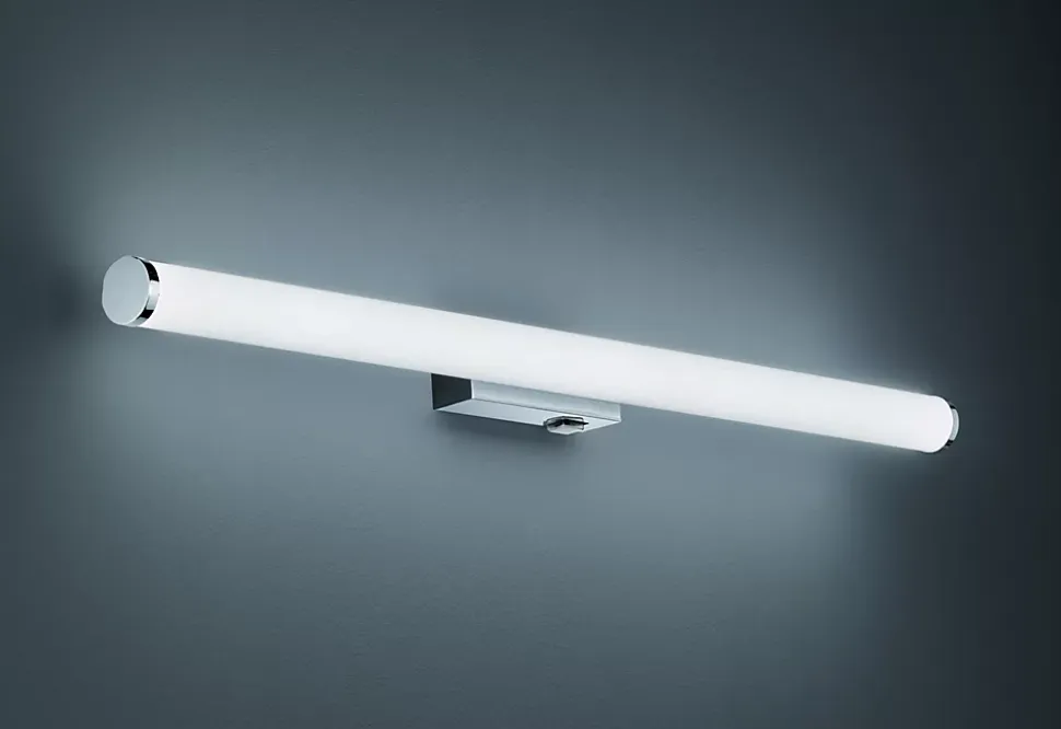 Les caractéristiques techniquesL’applique murale Mattimo de Trio allie sobriété et fonctionnalité. Sa technologie LED SMD intégrée de 8,6 watts offre un éclairage doux et homogène de 880 lumens à 3000K, parfait pour une ambiance chaleureuse.Son indice de protection IP44 garantit une résistance aux projections d’eau, ce qui la rend parfaitement adaptée à une installation dans des pièces humides comme la salle de bains.Cette applique mesure 80,4 cm de largeur pour 5,5 cm de hauteur, et son corps en métal chromé s’harmonise parfaitement avec le plastique blanc pour un rendu moderne et épuré.Les avantages esthétiquesSon design allongé et minimaliste apporte une touche d’élégance discrète, idéale à positionner au-dessus ou à côté d’un miroir dans votre espace de lavage.Grâce à son interrupteur intégré, vous pouvez allumer et éteindre la lumière facilement, sans besoin d’équipement supplémentaire.Économique et durable, cette applique LED permet d’économiser jusqu’à 80 % d’énergie par rapport aux lampes halogènes traditionnelles, avec une durée de vie prolongée de 30 000 heures.Une solution d’éclairage moderne, efficace et respectueuse de l’environnement pour sublimer votre intérieur avec style et praticité.