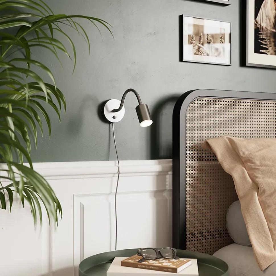 - L’applique murale est munie d’une fiche qui vous permet de placer votre lampe à côté d’un lit ou d’un fauteuil de lecture