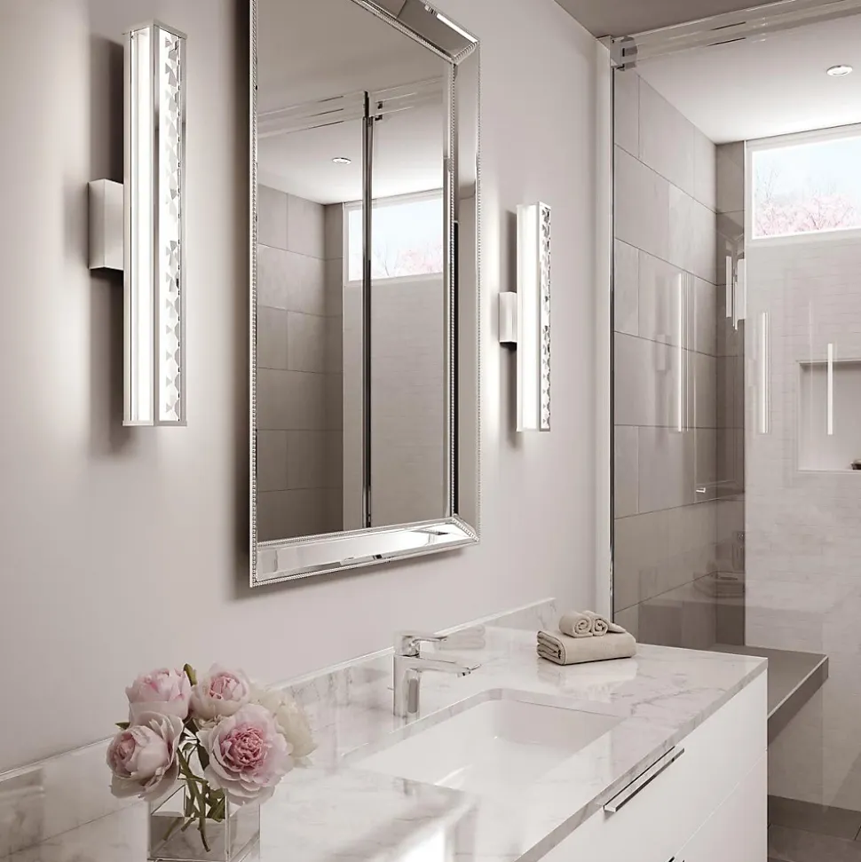 Inspirée par la finesse de la joaillerie, l’applique murale Jessie LED utilise des cristaux facettés pour permettre une réflexion spectaculaire de la lumière, adoucie par un diffuseur blanc à l’arrière.