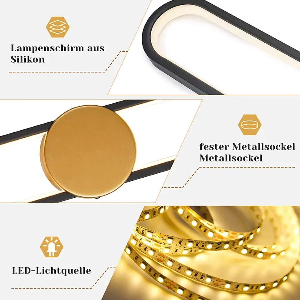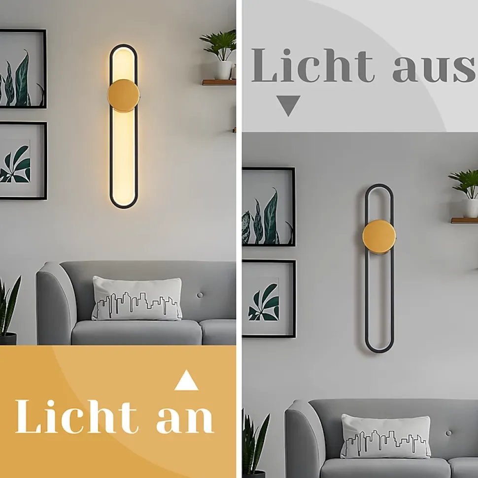 Esthétique moderne : Cette applique murale d’intérieur au design unique séduit par ses lignes épurées et son élégance simple, reflétant l’approche stylistique du designer. Elle est la pièce maîtresse de tout salon. Son allure dorée sobre et décontractée s’intègre parfaitement aux intérieurs modernes.Applique murale blanc chaud : Cette applique murale moderne est équipée de puces LED de haute qualité délivrant un flux lumineux de 1 450 lm. Elle produit ainsi une lumière plus uniforme et durable, avec un éclairage plus intense. Avec un indice de rendu des couleurs (RA) supérieur à 80, elle reproduit fidèlement les couleurs d’origine des objets. Économe en énergie, elle offre une lumière vive et agréable, sans éblouissement, et est agréable pour les yeux.Matériau de haute qualité : Cette applique murale d’intérieur dorée est fabriquée en aluminium de haute qualité, dont la surface est traitée par pulvérisation et polissage à haute température. Elle est ainsi résistante à la rouille, durable et facile à nettoyer. L’abat-jour en silicone de haute qualité offre une transmission lumineuse douce et agréable et est incassable.Détails techniques : Dimensions de la lampe : 60 x 12 x 5,5 cm ; Consommation : 12 W ; Température de couleur : 3000 K blanc chaud ; Tension : 230 V ; Type de source lumineuse : LED ; Intensité variable : Non ; Portée d’éclairage : 8-12 m². Câblée et montée en surface pour une installation facile.Utilisations polyvalentes : Cette applique murale LED peut être montée verticalement ou horizontalement et est idéale pour l’éclairage intérieur. Elle est idéale pour éclairer et décorer des pièces telles que : salon, chambre, couloir, cuisine, cage d’escalier, balcon, chambre d’enfant, bar et hôtel.