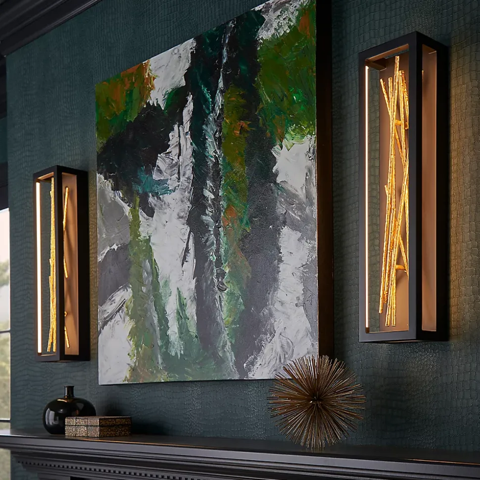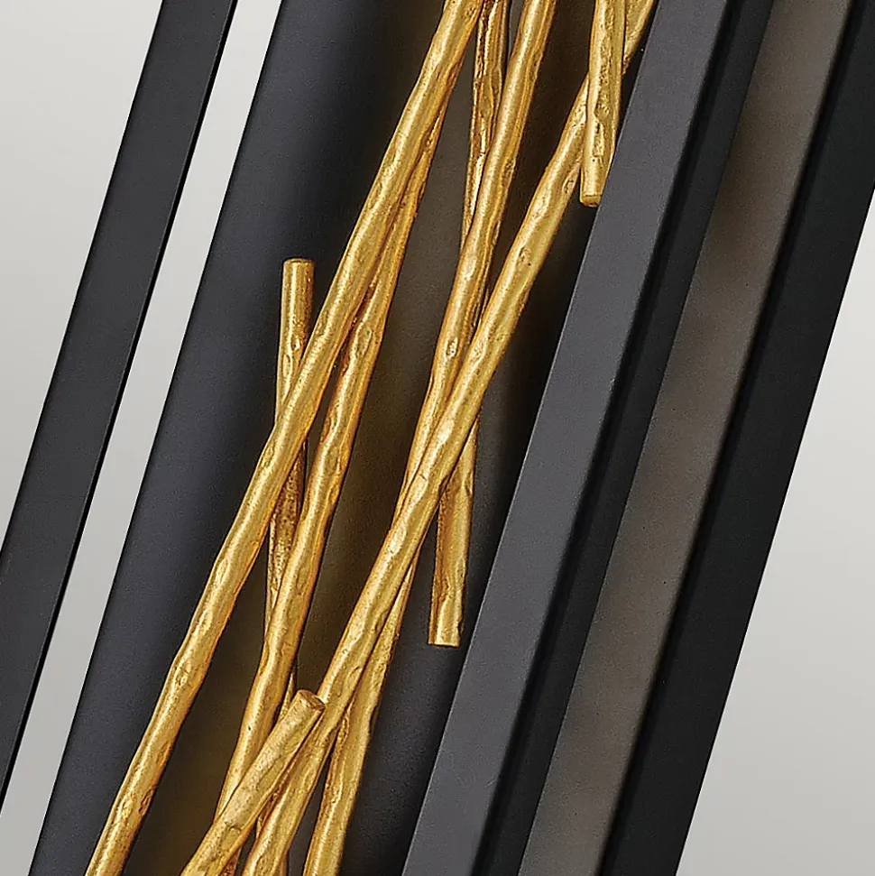 Le design époustouflant de Styx fusionne un glamour riche avec un style moderne pour une silhouette dynamique et captivante avec des éléments inattendus. Un cadre ouvert à LED intégré est entièrement dimmable, composé d’angles nets dans une finition noire chic. Le cadre illumine des branches métalliques texturées en or doré, mêlant des éléments organiques et contemporains.
