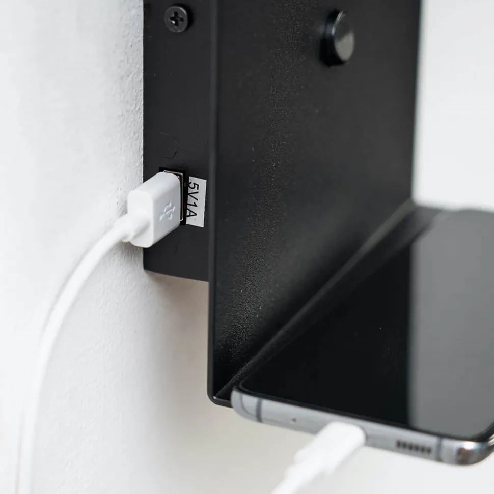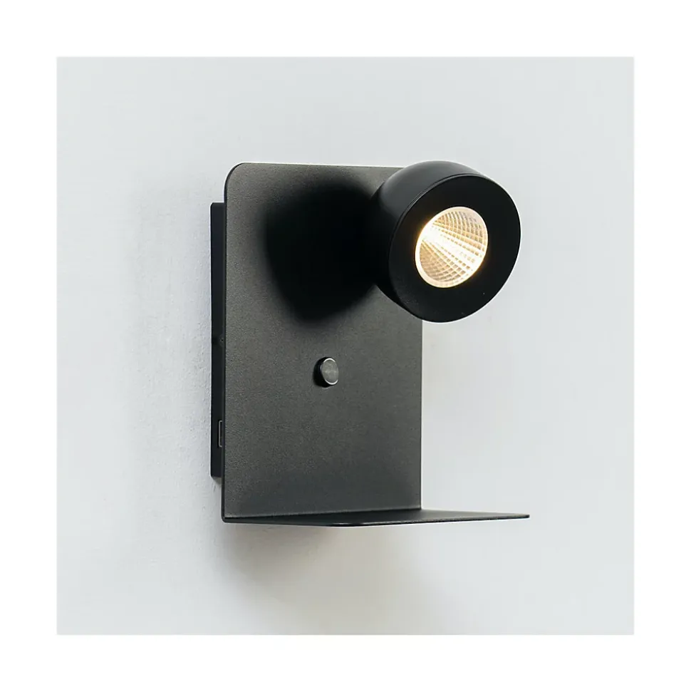 Lyngen est une petite applique murale liseuse de couleur noire en aluminium. Cette applique possède un interrupteur ainsi que des LED intégrées au luminaire d’une puissance de 5W restituant 350 lumens. Elle mesure 16 cm sur 18 cm. Sa finition noire sobre lui permet de pouvoir être installée dans différents intérieurs et d’y apporter de la modernité ! L’applique possède un petit support pour poser téléphone et un port USB.) Livré monté, prêt à installer (