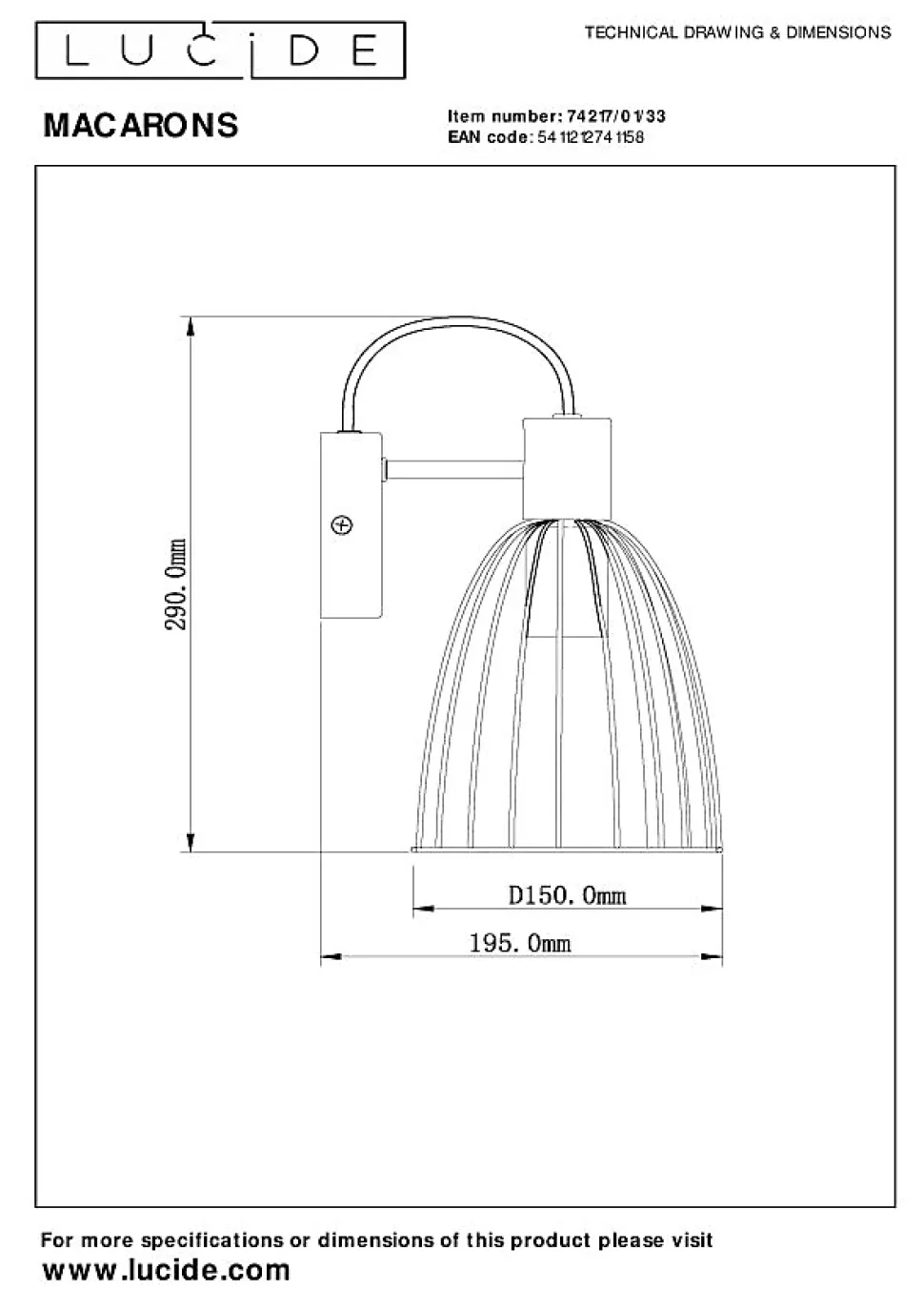 Le look rétro de cette applique murale allie nostalgie, technologie moderne et matériaux de haute qualité. Le nom Macarons est donc tout à fait approprié. Les petites friandises colorées – café en option – évoquent les mêmes sentiments chaleureux que cette charmante lampe murale. La source lumineuse est entourée d’une jupe composée de tiges métalliques. Celles-ci permettent à la lumière de s’exprimer librement et apportent au luminaire un caractère unique. Pour profiter encore plus de ce créateur d’ambiance unique et polyvalent, connectez Macarons à un variateur d’intensité externe.Caractéristiques uniques:• Utilisable avec une source lumineuse LED• Facile à connecter à un variateur (non fourni)• Fabriqué en métalPrincipales caractéristiques du produit:• Consommation énergétique: 1x40W / 230V / A intensité variable (Ampoule non incluse)• Dimensions: Lon.15 x Larg.19,5 x Haut.29 cm• 2 Ans garantie sur le luminaire / source de lumière appropriée est EAN: 5411212491589Pourquoi choisir l’éclairage Lucide?Lucide incarne un design innovant, un savoir-faire artisanal et une fiabilité exemplaire. En tant qu’entreprise familiale belge avec plus de trois décennies d’expertise, nous concevons des éclairages de haute qualité qui enrichissent et transforment chaque espace, tant intérieur qu’extérieur. Notre collection polyvalente comprend des luminaires durables et des sources lumineuses économes en énergie, soigneusement conçus par nos propres experts et fabriqués selon les normes CE les plus strictes. Grâce à notre large gamme, nous vous proposons toujours une solution d’éclairage adaptée, quel que soit le style ou l’espace. Ainsi, nous illuminons non seulement votre espace de vie mais aussi votre processus de choix dans la recherche d’un éclairage de qualité et abordable. Chez Lucide, nous combinons innovation et savoir-faire pour un éclairage qui ajoute non seulement de l’ambiance, mais transforme…