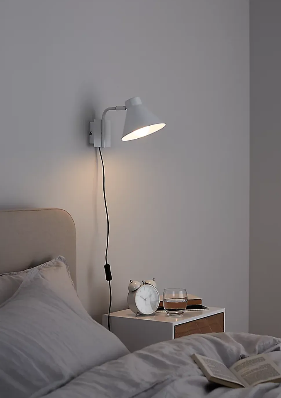 - L’applique est munie d’une fiche pour pouvoir placer votre lampe à côté d’un lit ou d’une chaise de lecture