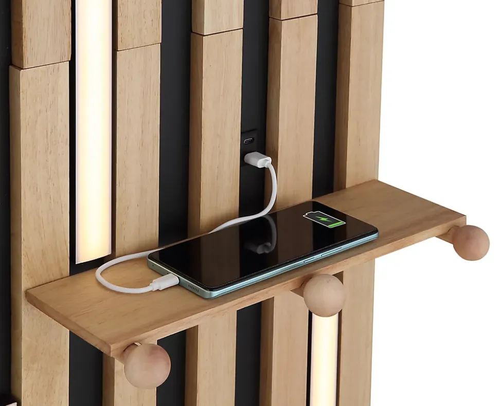 Applique murale métal noir mat, bois brun, plastique blanc, Interrupteur à bascule sur l’article, Sortie USB, PxH: 500x1100mm, AL: 128mm, incl. LED 15W 230V, 1776lm Source, 975lm Output, 3000K
