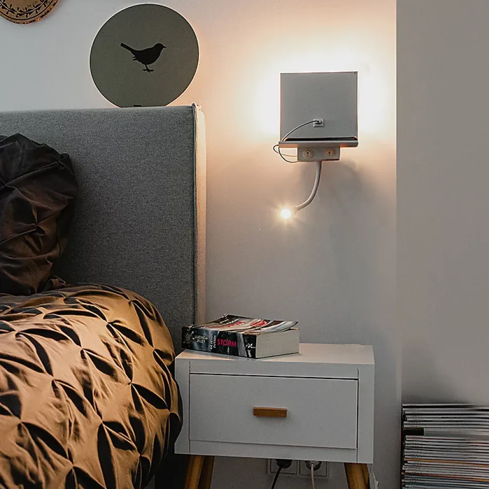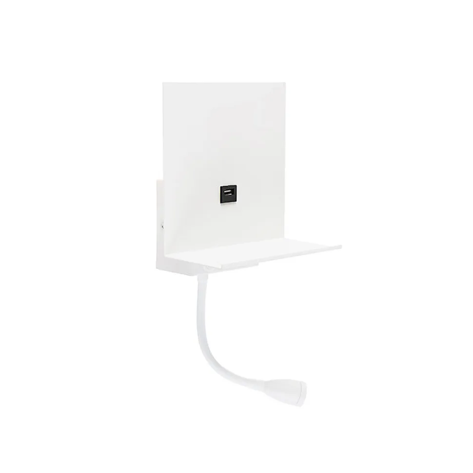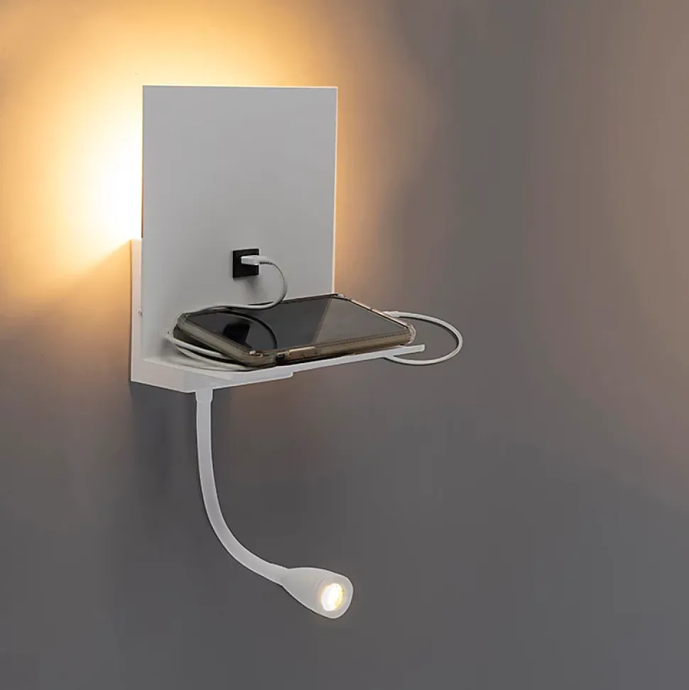 Le Flero est une applique murale multifonctionnelle. Cette lampe est de couleur blanche et dispose d’un port USB pour charger votre tablette et/ou votre smartphone ! Très fonctionnelle et intemporelle. Vous pouvez ajuster le bras flexible à votre goût et ainsi décider de la direction de la lumière ! L’applique murale a une hauteur totale de 45 cm et une largeur de 18 cm. La plaque de montage murale a une hauteur et une profondeur de 10 cm. Le bras flexible est doté de LED intégrées de 2 700 kelvins et de 100 lumens. Le Flero diffuse ainsi une lumière douce et chaleureuse dans votre intérieur ! À noter ! L’ampoule qui éclaire le mur, à l’arrière du luminaire, doit être commandée séparément. Il s’agit d’une ampoule à culot G9. Cette lampe n’est pas dimmable. Complétez votre chambre à coucher avec l’applique murale Flero.