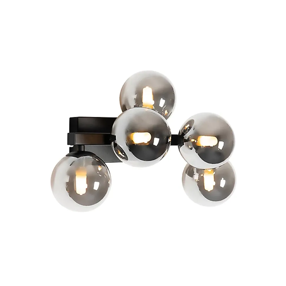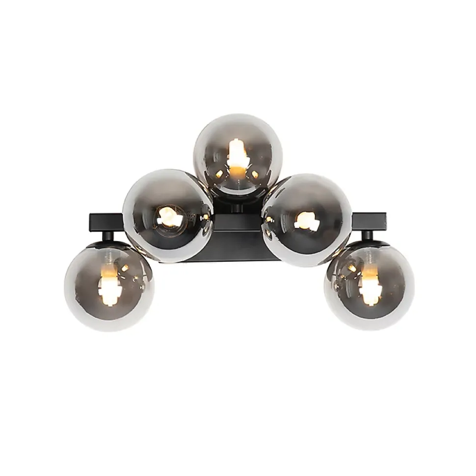 Créez une ambiance unique dans votre intérieur avec Bianca. Cette applique murale moderne est dotée de 5 ampoules fumées en verre qui diffusent une lumière chaleureuse. Elle mesure 23 cm de profondeur, 24 cm de hauteur et 38 cm de longueur. Les ampoules en verre ont chacune un diamètre de 10 cm. La plaque de montage mesure 2,5 cm de diamètre, 8 cm de hauteur et 17,8 cm de longueur. Les 5 ampoules nécessaires ne sont pas incluses et doivent être commandées séparément. Choisissez l’ambiance qui vous convient grâce à un variateur externe, car cette lampe est dimmable (variateur non inclus). Créez une ambiance encore plus chaleureuse chez vous avec Bianca !
