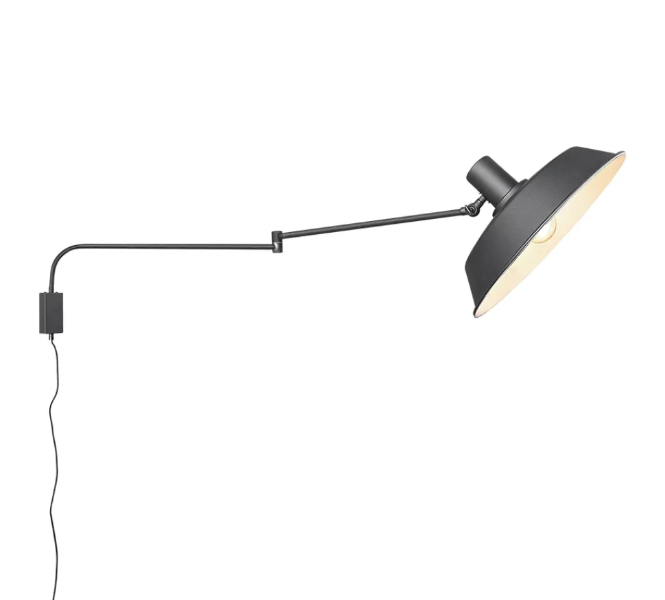 Un éclairage mural au style industriel moderneAvec l’applique murale Bolder de Trio, adoptez un style minimaliste et fonctionnel. Son bras et son abat-jour en métal noir mat sont entièrement orientables pour ajuster l’éclairage selon vos envies.Polyvalente et pratique au quotidienGrâce à sa grande projection de 150 cm, la Bolder est idéale comme liseuse au-dessus du canapé, mais aussi en applique dans une cuisine ou au-dessus d’une table. Son interrupteur à cordon intégré vous évite les contraintes de branchement mural direct.Design industriel et robusteFabriquée en métal noir mat, cette applique murale s’intègre parfaitement à un intérieur moderne ou industriel. Elle deviendra un élément décoratif à part entière.Compatible LED pour un éclairage économiquePrévue pour accueillir une ampoule E27 (max. 40W), elle est parfaite avec une ampoule LED à filament pour une ambiance chaleureuse et économe. Les ampoules LED offrent une longue durée de vie, une faible consommation d’énergie et réduisent l’échauffement.