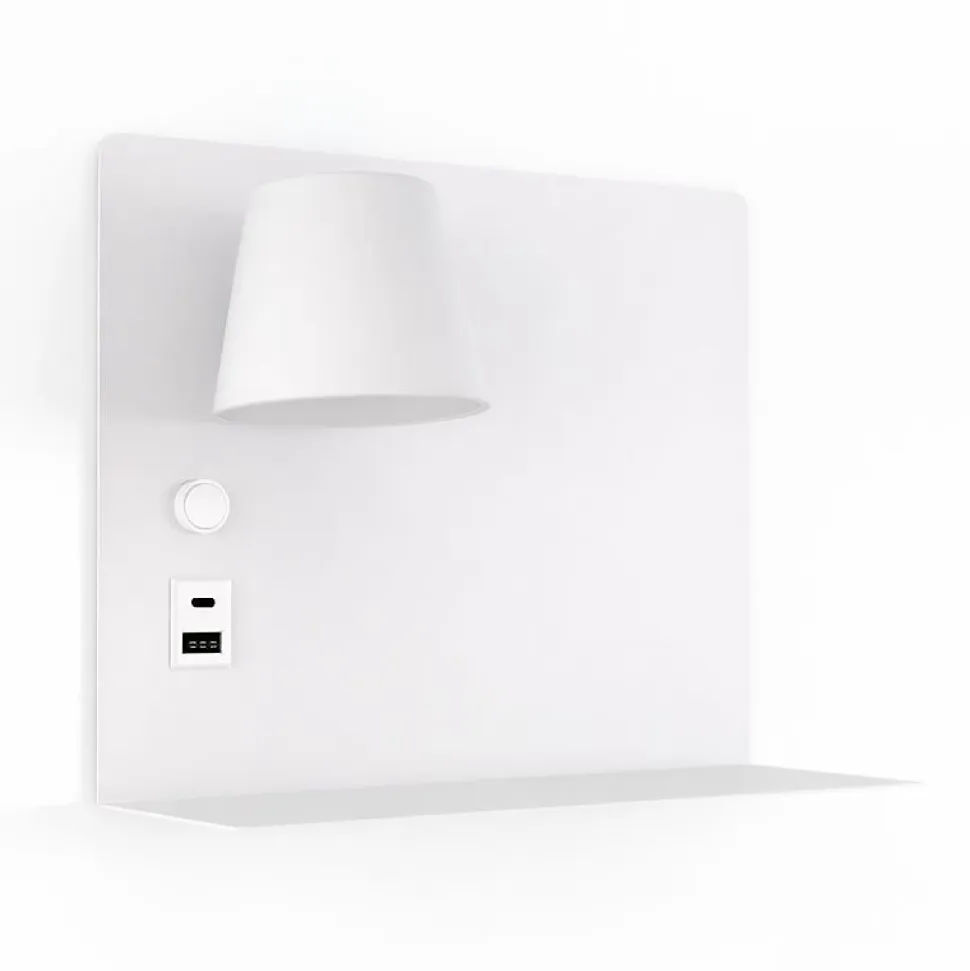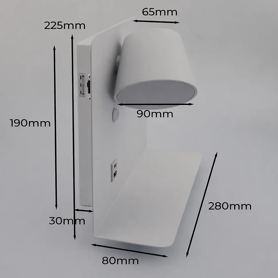 L’applique murale SION est une solution moderne et fonctionnelle pour les têtes de lit. Elle intègre un spot LED orientable de 6 W, inclinable jusqu’à 350°, offrant un éclairage précis et agréable.Elle est équipée de ports USB Type-A et USB Type-C pour une charge rapide, ainsi que d’un plateau métallique intégré pour y déposer des appareils ou autres objets. Le spot peut être installé à gauche ou à droite du lit.Caractéristiques principales :Spot LED orientable 6 W (520 lm)Installation à gauche ou à droiteUSB Type-A + USB Type-C (5 V/2 A)Interrupteur individuelTempérature de couleur sélectionnable : 2700 K / 4000 K / 6000 KIndice de protection IP20 (usage intérieur)Spécifications :Matériau : AluminiumDimensions : 280 × 220 mmCouleurs : Blanc, Gris, NoirDriver : KEGU | Puces LED : OsramRemarque : Câble de charge et appareils non inclus.