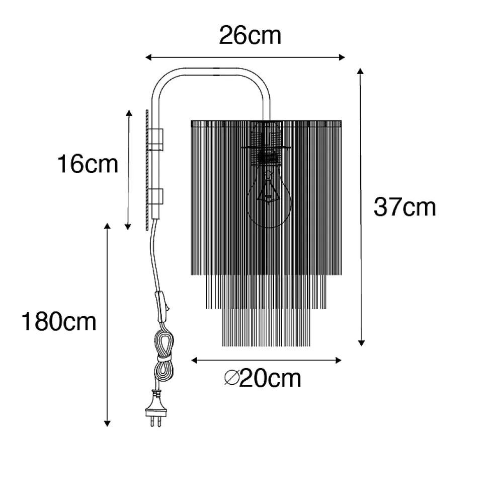 Donnez à votre intérieur une véritable ambiance orientale avec cette applique murale Franxa. Cette lampe possède un luminaire doré et un abat-jour de couleur crème. L’abat-jour à franges crée un bel effet lumineux et atmosphérique dans toute la pièce. Elle mesure 37 cm de hauteur et 26 cm de profondeur. La plaque de montage a un diamètre de 16 cm. Le cordon fourni mesure 180 cm de long. Complétez la Franxa avec une ampoule E27 d’une puissance maximale de 40W. Veuillez noter que cette ampoule n’est pas incluse et doit être commandée séparément. Vous pouvez également atténuer cette applique murale avec un variateur externe (non inclus). Rendez votre maison encore plus cosy avec notre applique murale Franxa ! Une veilleuse parfaite à côté du lit ou un créateur d’ambiance dans le salon. Même avec les lumières éteintes, elle vole la vedette dans votre intérieur !