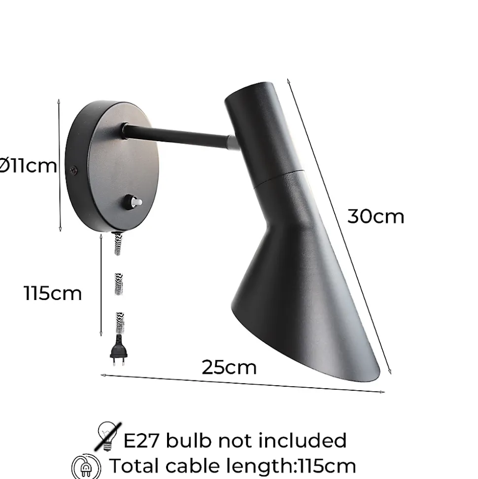 Applique mural pivotant avec câble prise et interrupteur Oslo – Design contemporain et élégant E27 Lapplique murale pivotante Oslo est une pièce de design contemporain fabriquée en aluminium avec des finitions de haute qualité. Sa structure à lignes épurées et géométriques ainsi que son abat-jour orientable permet de diriger la lumière de manière précise offrant un éclairage doux et ciblé. Caractéristiques principales du produit Design élégant Son design inspiré du minimalisme et de la modernité en fait un choix idéal pour tout environnement sadaptant parfaitement aux chambres salons et bureaux. Abat-jour asymétrique Labat-jour orientable dirige la lumière vers le bas tandis que lintérieur blanc de labat-jour assure une lumière douce et uniforme. Couleurs disponibles Disponible en blanc noir et gris pour sadapter à différents styles décoratifs. Installation facile Facile à installer en vissant la base métallique au mur. Tous les accessoires nécessaires à linstallation sont inclus. Câble avec interrupteur Lapplique est équipée dun câble de 115 m avec une prise européenne et dun interrupteur intégré à la base pour une utilisation confortable. Idéale pour une installation comme lampe de lecture ou décoration de tête de lit cette applique murale Oslo combine fonctionnalité et style de manière harmonieuse. Sa polyvalence lui permet de sadapter à diverses exigences déclairage dans nimporte quel espace intérieur.
