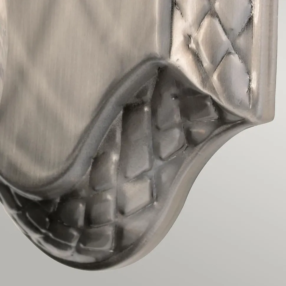 Un classique de Hinkley, la collection Plantation ornée présente un verre optique clair exceptionnel en forme d’ananas qui fait une déclaration noble. La finition en nickel antique poli comporte des manchons de bougie assortis et des détails moulés décoratifs élaborés.