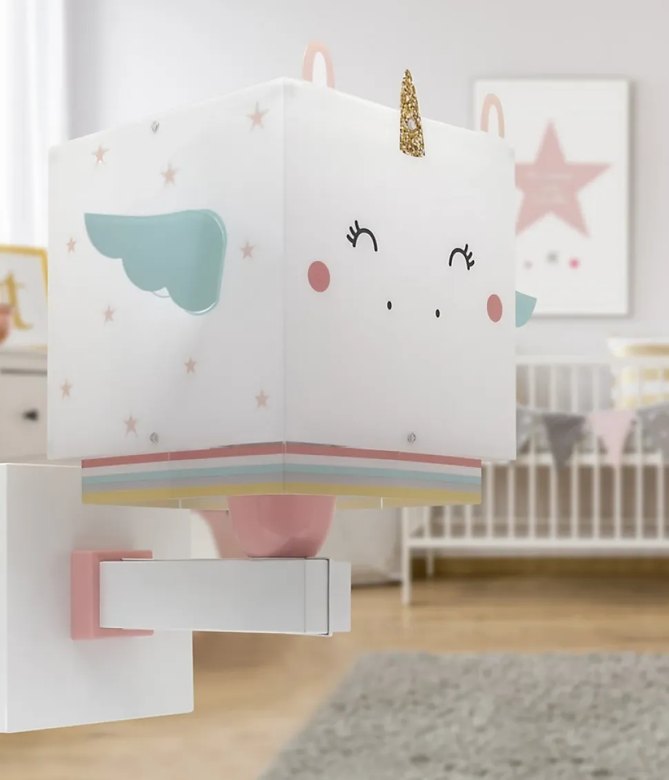 Applique murale pour enfant Little Unicorn Petite Licorne Unicorn en forme de Licorne à double écran transparent et à motifs découpés.