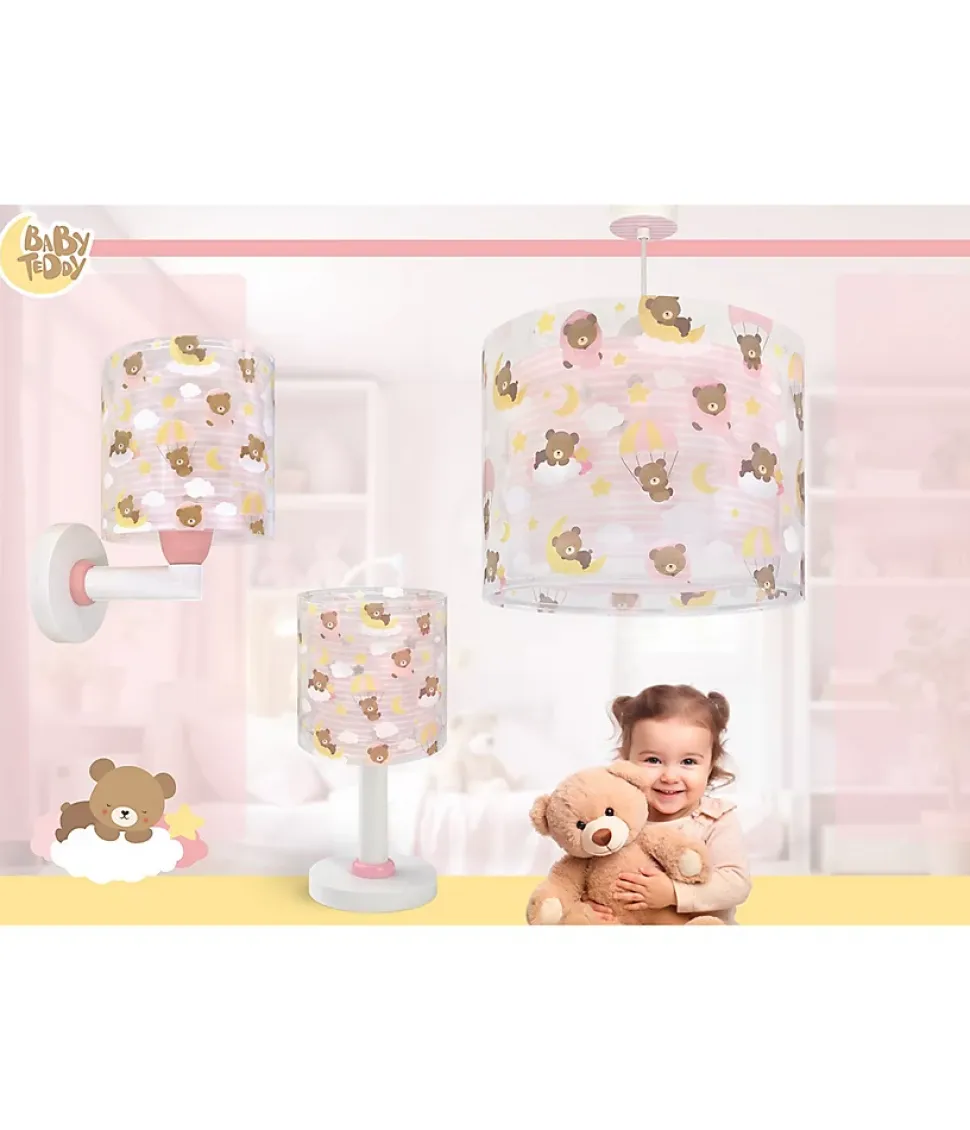 Applique murale pour chambre Baby TeddyL’applique murale Baby Teddy Rose enveloppe la chambre d’enfant de tendresse et de sérénité. Avec ses adorables oursons sur des nuages, elle crée une ambiance chaleureuse qui accompagne les rêves et les jeux du bébé. Une lumière décorative qui ajoute douceur et fantaisie à l’espace.