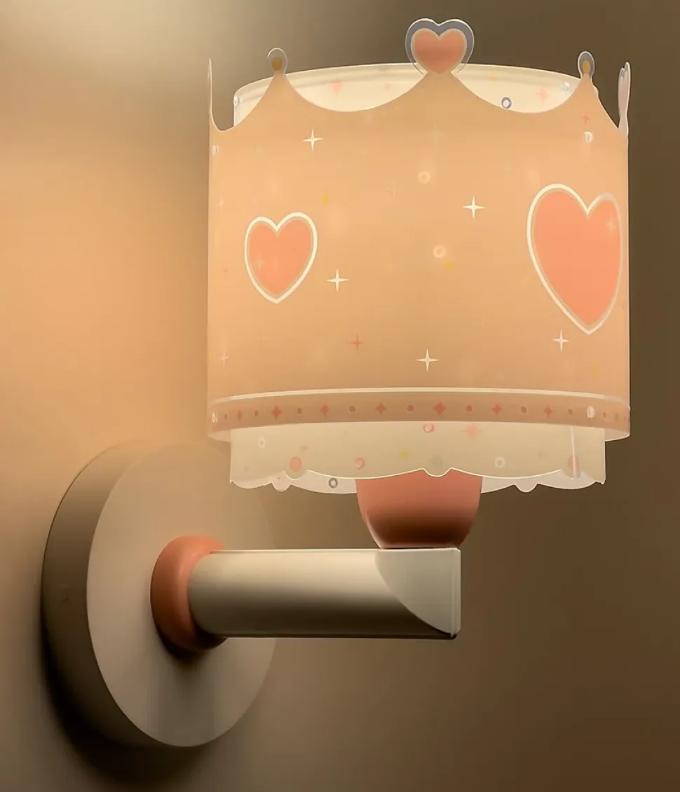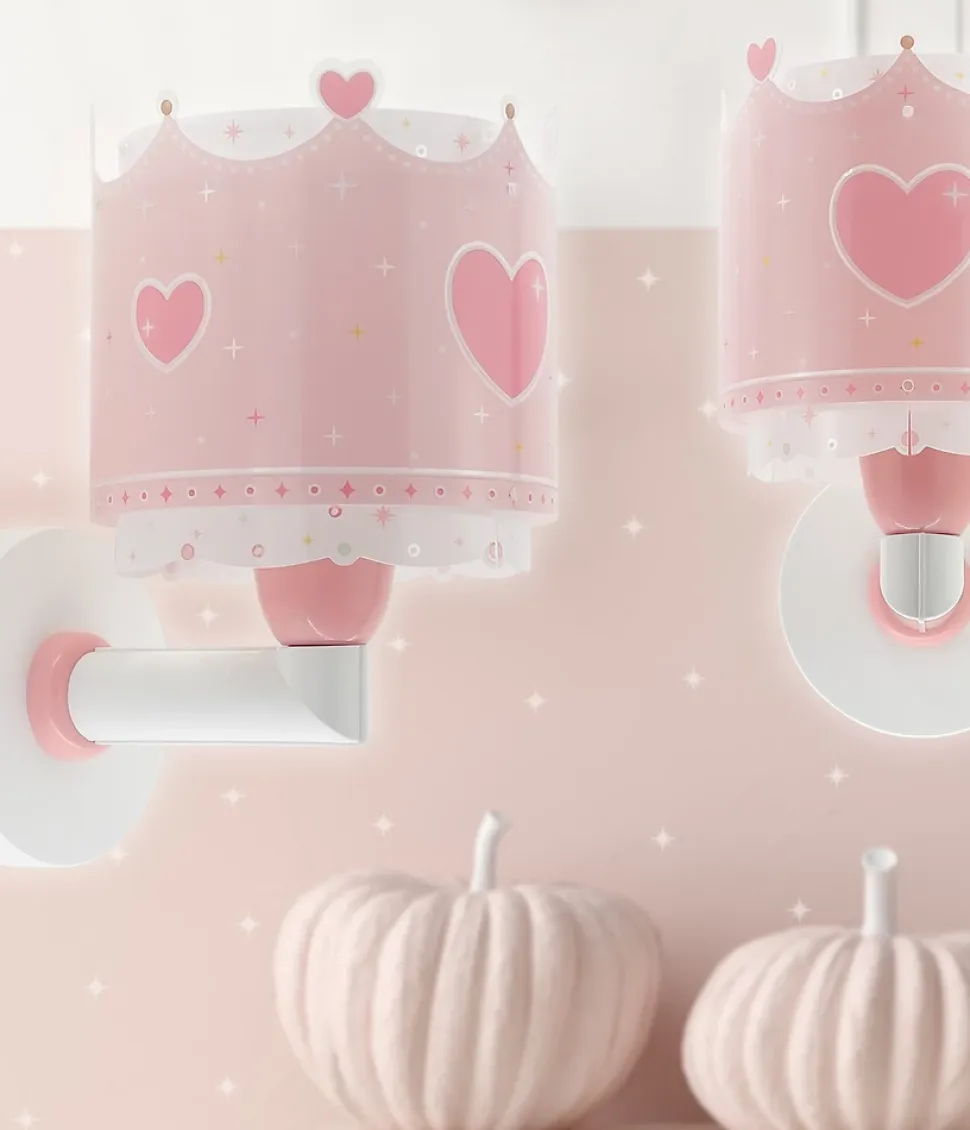 Acheter une applique murale pour fille Little QueenL’ applique murale pour fille de la nuova collection Little Queen donnera à la chambre des enfants une touche de lumière et de couleur pour les accompagner dans leur quotidien. Avec double abat-jour transparent, motif couronne et cœurs, en rose, et effet de fluorescence : lorsque la lampe est éteinte, elle brille dans le noir pendant quelques minutes.Caractéristiques de l’applique murale pour chambre fille Little QueenL’ applique murale pour enfants Little Queen s’installe directement sur le mur, et vous pouvez l’utiliser avec le câble de l’interrupteur à la prise électrique ou sans le câble. Il est fabriqué en polypropylène transparent, un matériau totalement sûr pour une utilisation dans les lampes pour enfants et qui passe les contrôles de qualité européens les plus exigeants.