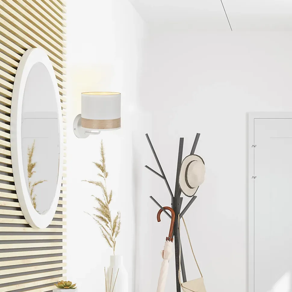 Applique murale Raito E14 40W IP20 L.15xl.19xP.19cm métal et coton blanc Corep