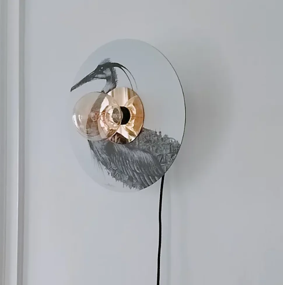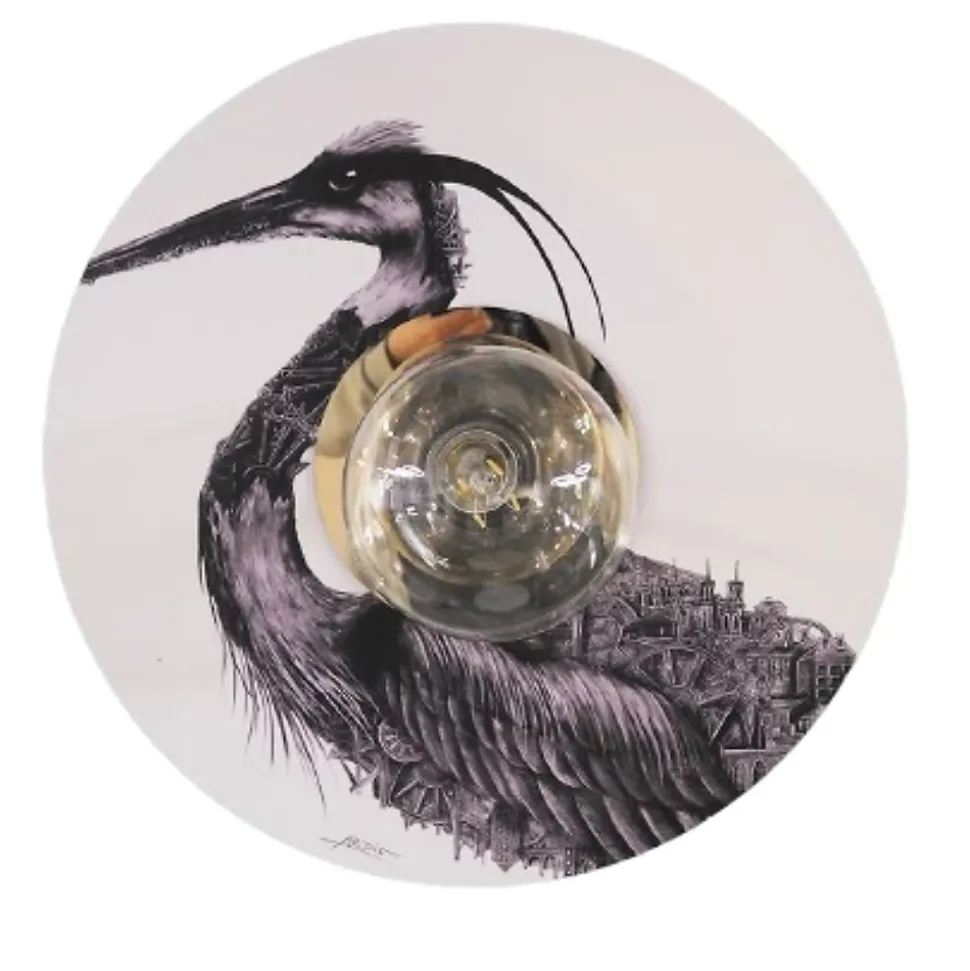 Luminaire mural design – collab d’artisteÉclairez votre intérieur avec ce luminaire de créateur, conçu en collaboration avec l’artiste français Ardif. 100 % made in France et en édition limitée, cette applique murale au design rond est parfaite pour une décoration intérieure moderne et ravira les amateurs d’Art en recherche d’une décoration originale et unique. Laissez-vous porter par l’univers unique d’Ardif avec ce majestueux héron mécanique, où précision et créativité s’entrelacent avec élégance. Une luminaire comme un tableau d’artiste pour décorer vos mur en soutenant la création artistique. Sa série des “mechanimals” est l’illustration de cet univers graphique et est visible sur les murs de la capitale depuis 2016. L’applique murale vous est livrée avec son kit de fixation.