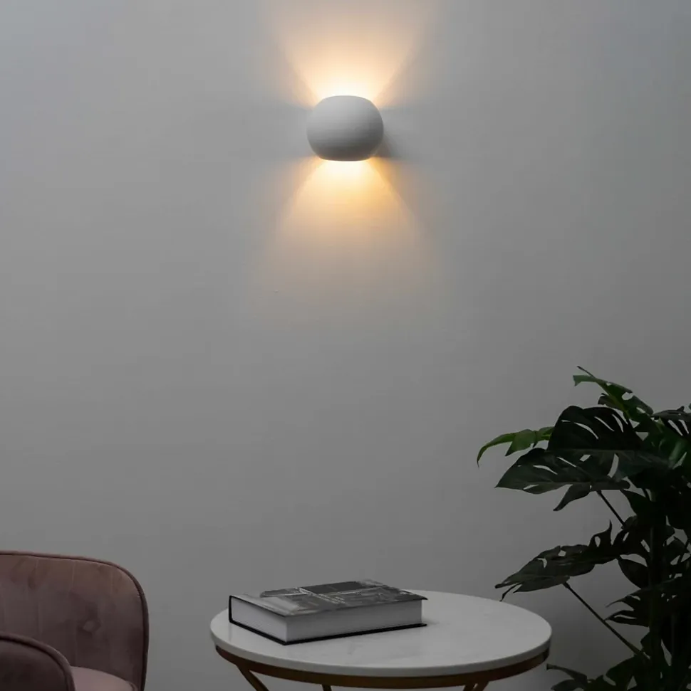 Très jolie applique murale blanche Athena. Sa forme en boule offre un rendu superbe à ce luminaire en plâtre au design original. Ses ouvertures vers le haut et vers le bas permettent un éclairage chaleureux. Son atout est, qu’autant que l’ensemble des appliques de la catégorie, elles peuvent être décorées et peintes selon vos envies, pour une personnalisation unique de votre intérieur.) Assemblage simple requis (