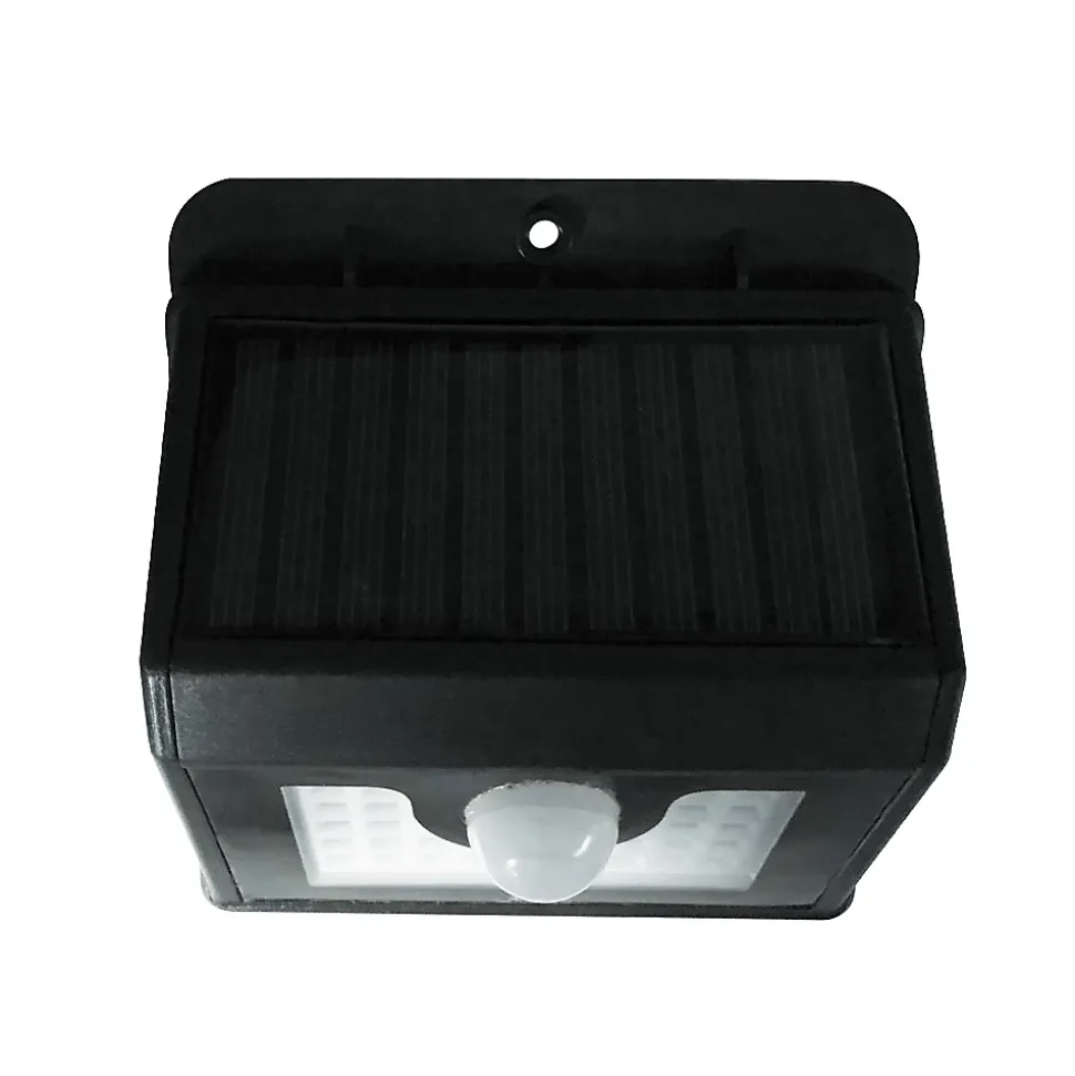 Applique murale solaire 300 lumens avec détecteur de mouvementsCes lampes sans branchement et au design moderne se déclencheront automatiquement à votre arrivée grâce à leur détecteur de mouvements intégré. La portée du signal s’étend jusqu’à 5 mètres sur un angle de 120°. Ce produit de qualité normé IP65 résiste aux poussières et aux projections d’eau venues de toutes direction. Vous pourrez ainsi le placer en extérieur sans crainte de dysfonctionnement. La lampe murale fonctionne à l’énergie solaire grâce à son panneau situé sur le dessus du boîtier. Nul besoin d’installation électrique et économie d’électricité assurée ! Éclairez vos entrées facilement avec un luminaire design et fonctionnel !Informations techniquesMatière : plastiqueDimensions :largeur : 10. 3 cmépaisseur : 4. 3 cmhauteur : 11. 5 cmAngle de détection : 120 degrés. Coloris : NoirPanneau solaire : 5V 100 mAh avec une pile rechargeable 3. 7V 1500 mAh. Temps de charge : 8 à 12 heures de soleil. Eclairage : 30 LED SMD coloris blanc. Puissance d’éclairage : 300 lumensDistance de détection : 5 mètres. Autonomie : jusqu’à 6 heures en éclairage en continuNorme d’étanchéité : IP65Accessoires : fixation fournies pour fixer au mur. Installation facile et rapide sans câble ni branchement électrique2 modes de fonctionnement : éclairage en continu dès la tombée de la nuit avec une puissance d’éclairage réduiteéclairage dès détection de mouvements à la tombée de la nuit avec puissance d’éclairage forte.