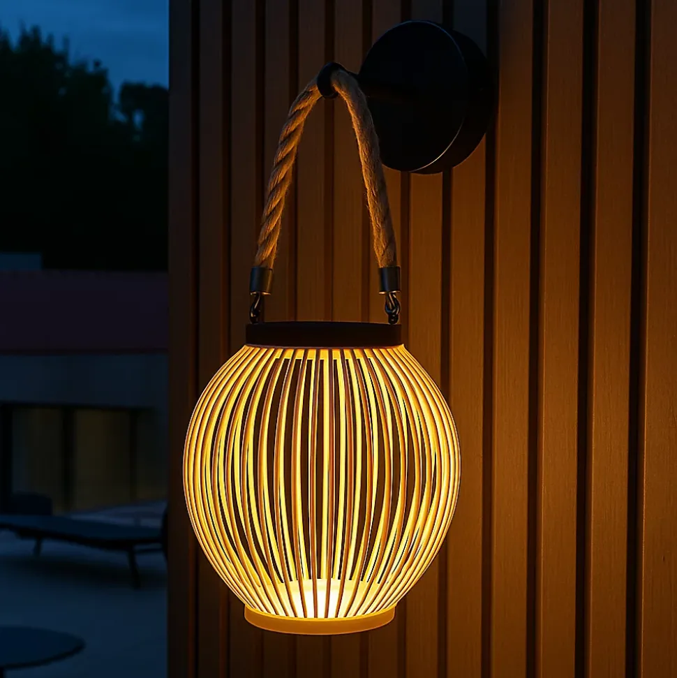L’applique murale solaire LED Isaline en bambou trèssé est une création artisanale offrant un look tendance à votre extérieur. Fournie avec la base rechargeable Sunny Small Round, elle propose trois modes d’éclairage de 30, 60 et 100 lumens pour adapter l’ambiance. Sa batterie assure une autonomie allant jusqu’à 16 heures en intensité faible après une charge solaire de 8 heures ou via câble de 5 heures. La base dispose d’un mode Daylight pour une activation automatique au crépuscule et d’une télécommande pour le contrôle à distance. D’un diamètre de 20 cm pour une hauteur totale de 40 cm poignée incluse, elle est certifiée IP44 pour résister aux éclaboussures et aux rayons UV. Sa structure robuste garantit une excellente durée de vie technique saison après saison. Parfaite pour les repas en plein air, les apéritifs ou les soirées d’été, elle crée immédiatement une ambiance douce et accueillante.