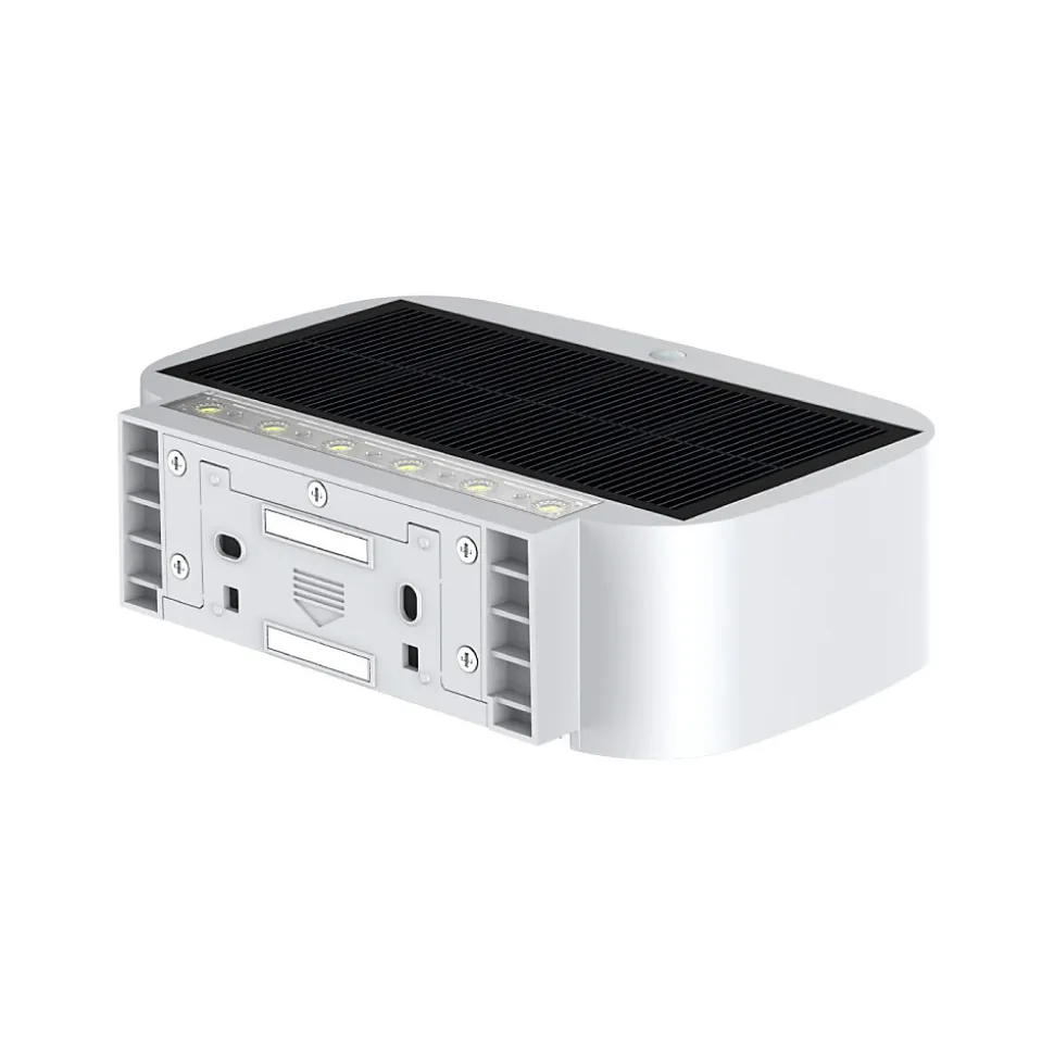 Applique LED solaire bidirectionnelle – 700 lumensLe panneau solaire en silicium monocristallin de 4,4 V et 1,7W alimente la batterie Li-ion rechargeable de 2000 mAh, offrant plus de 7 jours d’autonomie avec une seule charge d’environ 5,5 heures. La technologie ALS2.4 assure un fonctionnement continu même en cas de faible ensoleillement.La lampe est équipée d’un capteur crépusculaire qui l’allume automatiquement lorsque la luminosité baisse ( 50 lx). Les 4 modes de fonctionnement permettent de régler la luminosité de 25 % à 100 %, selon vos besoins.Fabriquée en ABS et polycarbonate, avec un indice de protection IP65, elle résiste à la pluie, à la poussière et aux variations de température (-10 °C à +60 °C), garantissant une durée de vie allant jusqu’à 50 000 heures.Caractéristiques principalesFlux lumineux : 700 lm (200 lm en haut / 500 lm en bas)Température de couleur : 4 000 KPanneau LED : 21 SMD 2835 – 160 lm/WPanneau solaire : 4,4 V 1,7 W (silicium monocristallin)Batterie : Li-Ion 3,7 V 2 000 mAh (format 18650)Autonomie : > 7 joursTemps de charge : 5,5 heuresCapteur crépusculaire : Activation 50 luxModes de fonctionnement : 4 (25 % / 50 % / 75 % / 100 %)Matériau : ABS et polycarbonateIndice de protection : IP65Dimensions : 175 x 124 x 50 mmPoids : 420 gDurée de vie : 50 000 heures / 25 000 heures cyclesHauteur d’installation : 2,5 mSurface éclairée : 7,8 m²Une lampe solaire décorative et performante alliant design et fonctionnalité pour rendre vos espaces extérieurs plus sûrs et plus attrayants