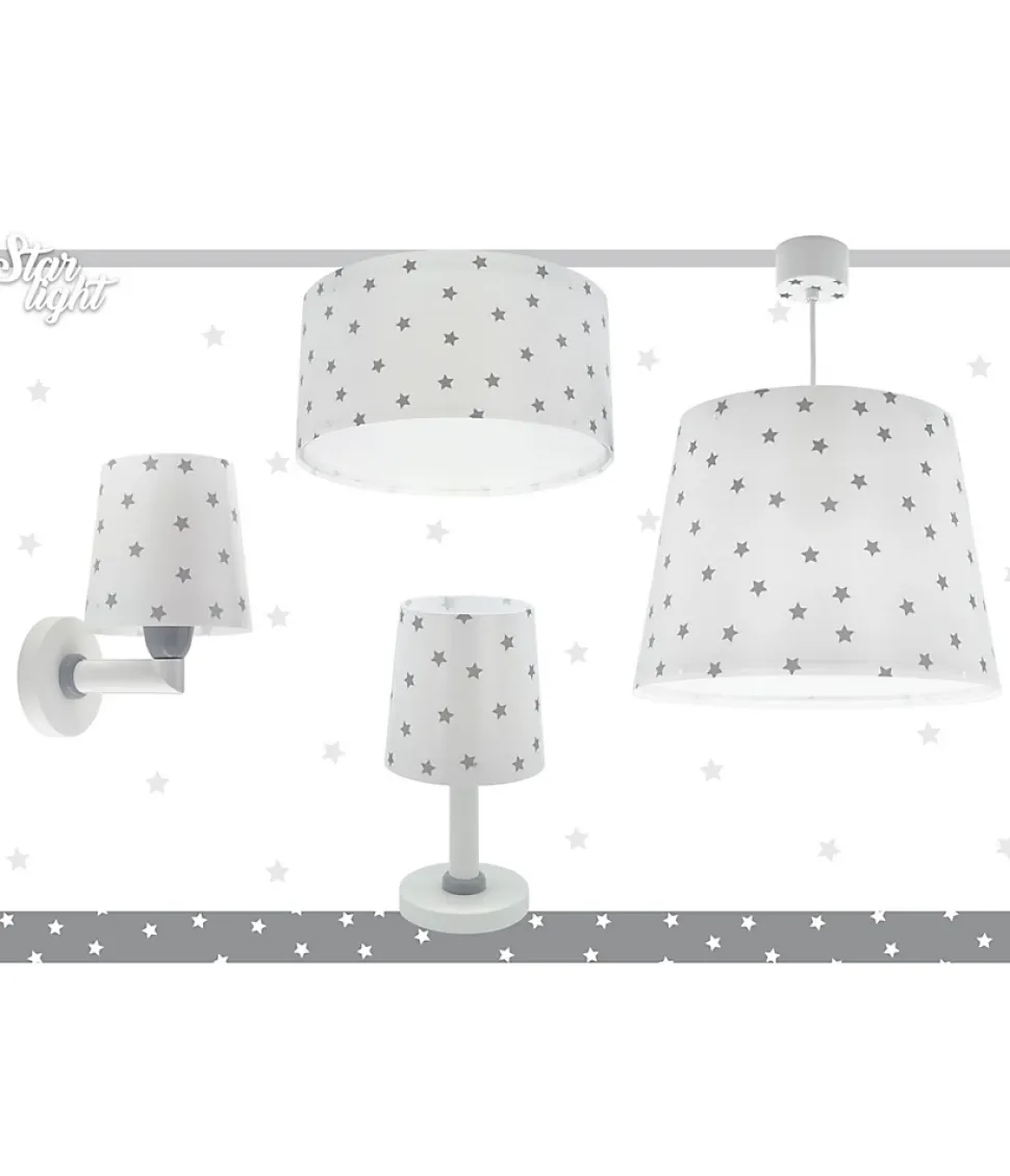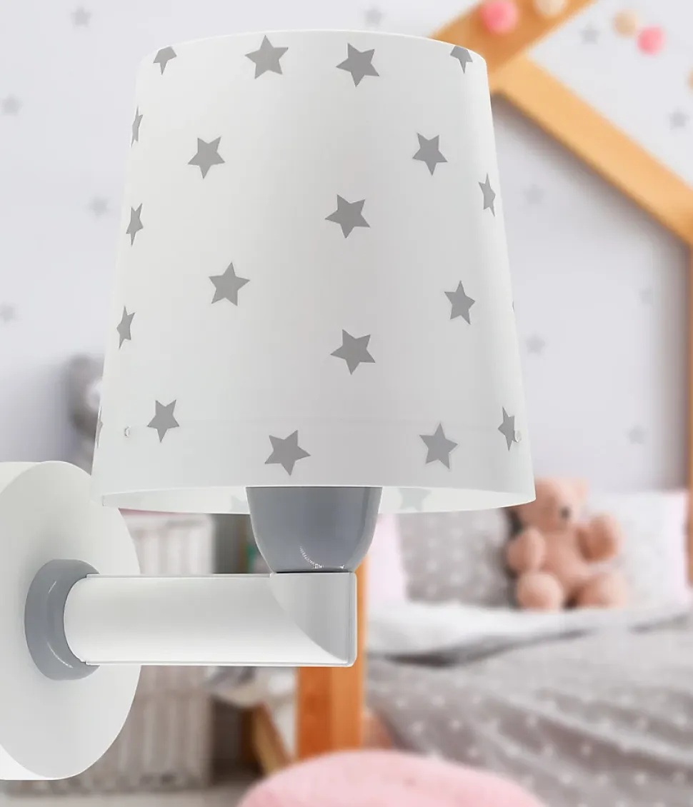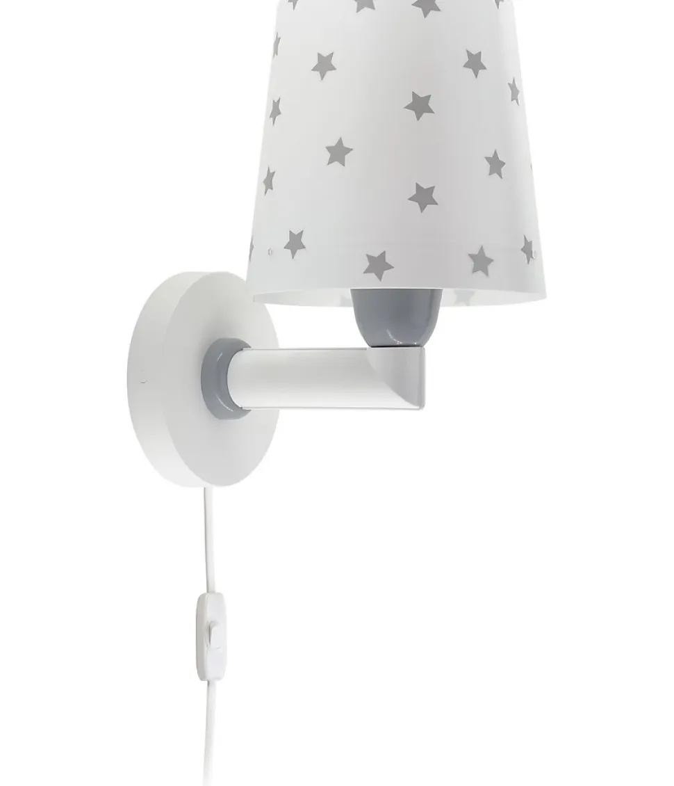 Applique murale avec étoiles Star Light blancL’applique murale avec étoiles pour enfants de la nouvelle collection Star Light en blanc, pour le mur de la chambre des enfants, aura un beau motif d’étoiles et la lumière dont elles ont besoin. Il est installé directement sur le mur et vous pouvez l’utiliser à la fois avec une installation directe sur le réseau électrique et via le câble avec un interrupteur.L’applique avec étoiles de la collection Star Light est en polypropylène transparent et a un effet fluorescent, de sorte que les étoiles brilleront dans le noir pendant quelques minutes lorsque les plus petits éteignent les lumièresCombinez l’applique Star Light avec le reste des lampes de la collection pour obtenir un ensemble très original et coloré