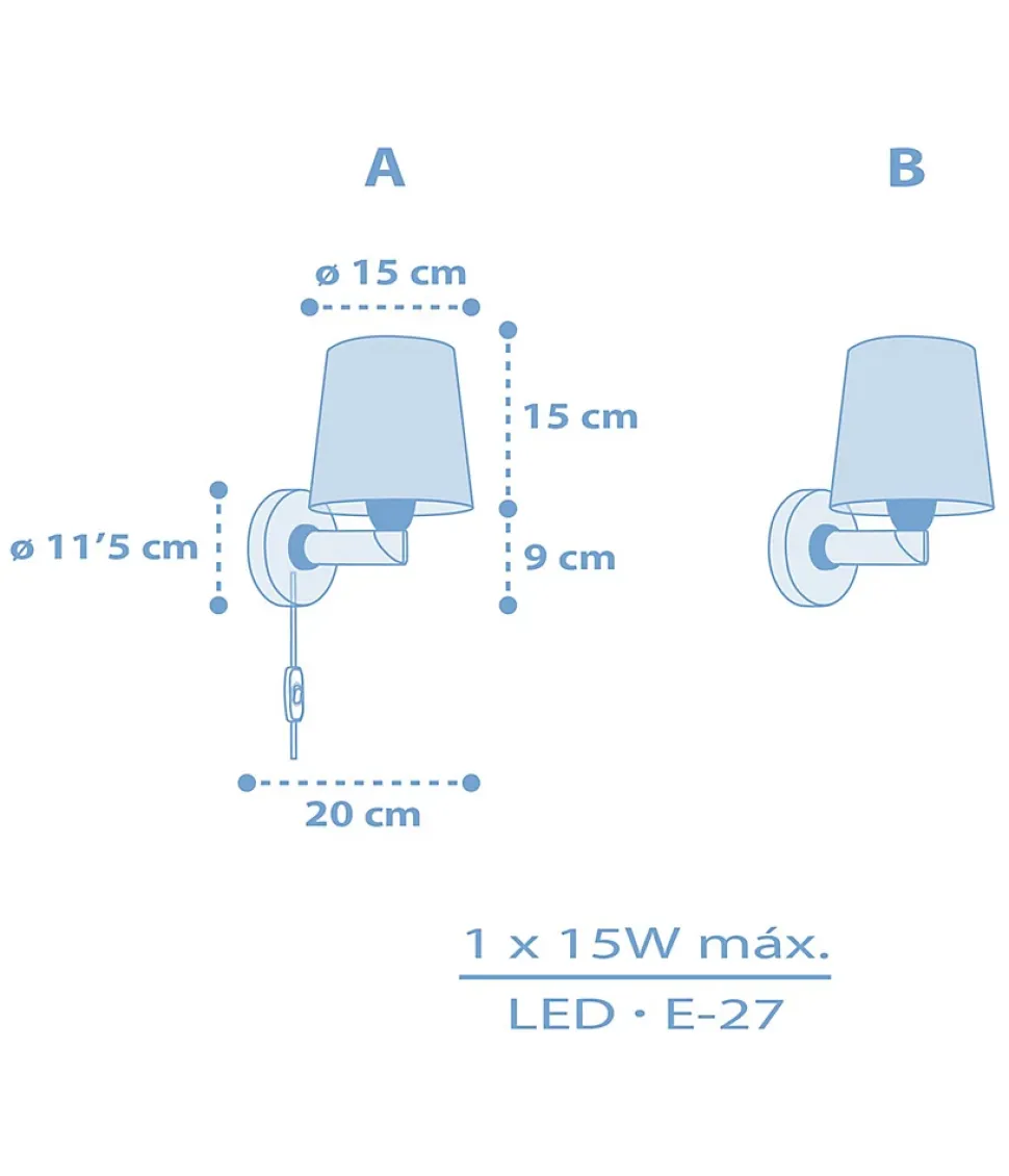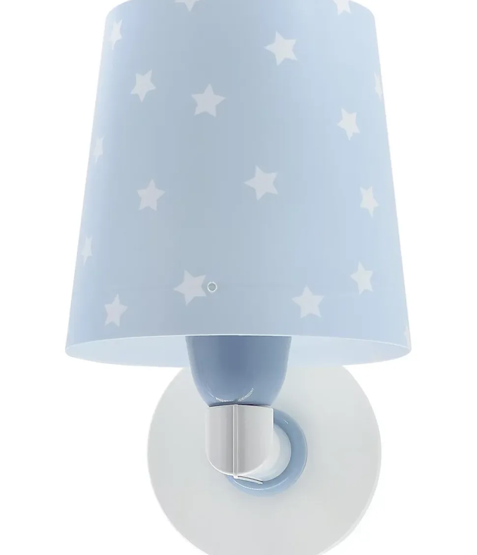 Applique murale avec étoiles Star Light bleuL’applique murale avec étoiles pour enfants de la nouvelle collection Star Light en bleu, pour le mur de la chambre des enfants, aura un beau motif d’étoiles et la lumière dont elles ont besoin. Il est installé directement sur le mur et vous pouvez l’utiliser à la fois avec une installation directe sur le réseau électrique et via le câble avec un interrupteur.L’applique avec étoiles de la collection Star Light est en polypropylène transparent et a un effet fluorescent, de sorte que les étoiles brilleront dans le noir pendant quelques minutes lorsque les plus petits éteignent les lumièresCombinez l’applique Star Light avec le reste des lampes de la collection pour obtenir un ensemble très original et coloré