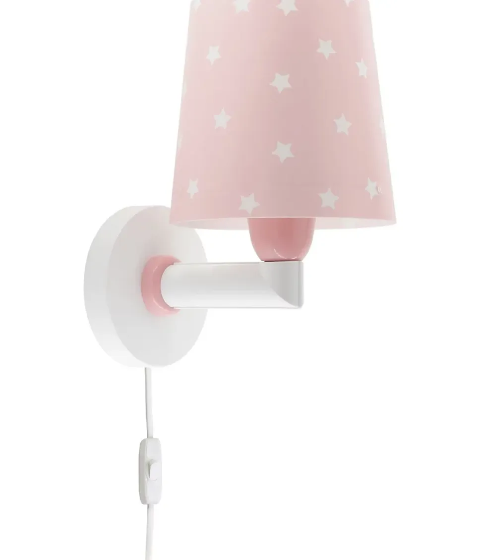 Applique murale avec étoiles Star Light roseL’applique murale avec étoiles pour enfants de la nouvelle collection Star Light en rose, pour le mur de la chambre des enfants, aura un beau motif d’étoiles et la lumière dont elles ont besoin. Il est installé directement sur le mur et vous pouvez l’utiliser à la fois avec une installation directe sur le réseau électrique et via le câble avec un interrupteur.L’applique avec étoiles de la collection Star Light est en polypropylène transparent et a un effet fluorescent, de sorte que les étoiles brilleront dans le noir pendant quelques minutes lorsque les plus petits éteignent les lumièresCombinez l’applique Star Light avec le reste des lampes de la collection pour obtenir un ensemble très original et coloré