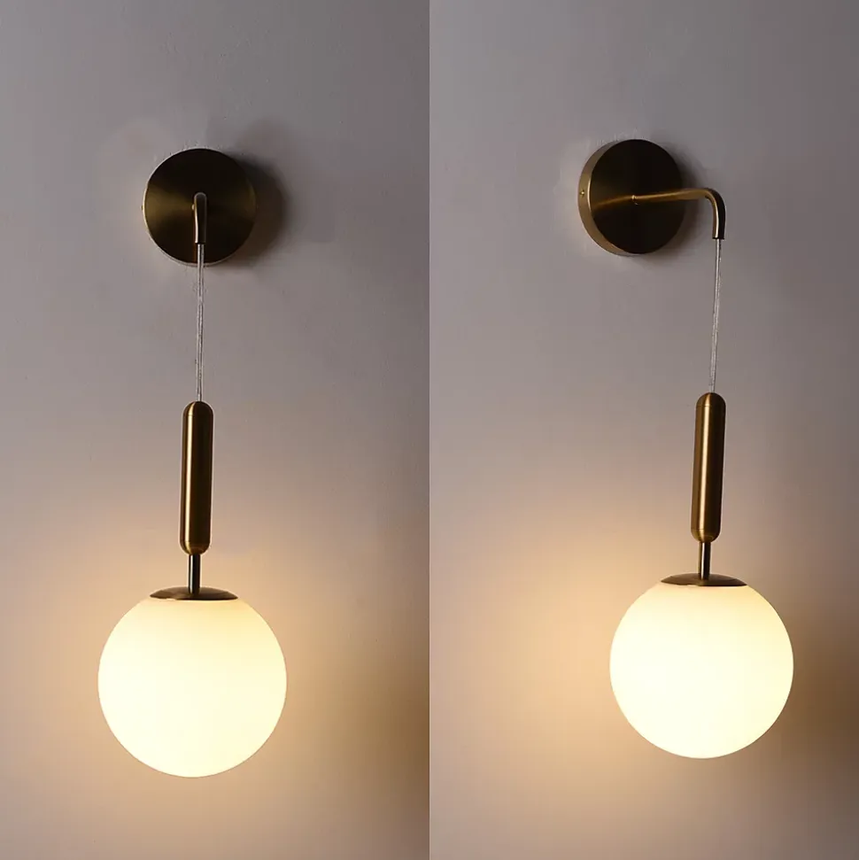 MATÉRIAU Fer forgé avec finition galvanisée corps de lampe avec peinture au four à haute température résistant à la corrosion antirouille robuste et durable. Abat-jour en verre opalin blanc transparent offrant un effet lumineux uniforme et doux. Dimensions Diamètre du globe en verre 18 cm distance par rapport au mur 27 cm base murale 12 cm câble suspendu réglable avec une longueur maximale de 20 cm. Douille E27 Compatible avec les ampoules LED E27. Alimentation 220-240 V. Lumière blanche chaude neutre tricolore toutes incluent une ampoule de 10W. Facile à installer et à nettoyer économe en énergie et longue durée de vie. Décoration Cette applique murale au design minimaliste et élégant néclaire pas seulement votre espace mais elle décore également met en valeur la qualité de vie et crée une ambiance chaleureuse pour votre intérieur. LIEUX DAPPLICATION Cette applique murale moderne de style scandinave est idéale pour le salon la chambre la lampe de chevet la salle à manger le bureau le couloir lhôtel la boutique le restaurant et dautres espaces intérieurs.