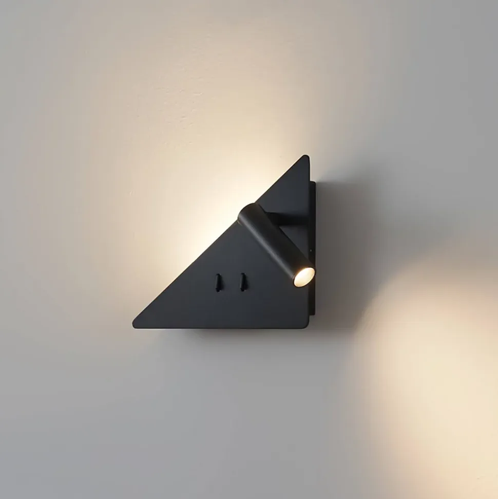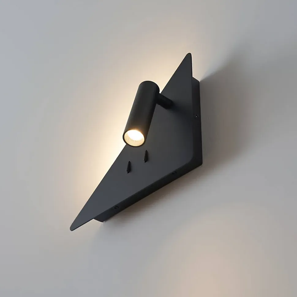 Le modèle Elaris type A associe design géométrique affirmé et confort lumineux. Son triangle en métal noir intègre une liseuse LED orientable et un éclairage d’ambiance doux, chacun contrôlable via son interrupteur dédié. L’angle droit, situé à droite, le rend parfait pour créer un duo symétrique avec la version type B. À installer seul ou en miroir, pour un éclairage mural à la fois décoratif et pratique.) Livré monté, prêt à installer (