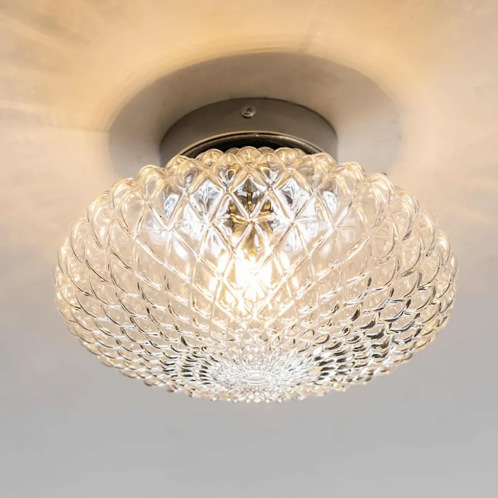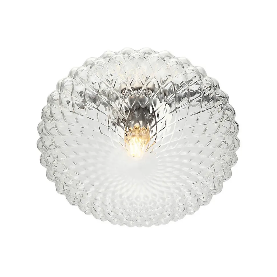 Avec son abat-jour en verre transparent de 21 cm de diamètre, le plafonnier Anthemis arbore une forme de rosace évoquant délicatement des pétales de fleur. Son design sobre et raffiné lui permet de s’intégrer facilement dans un intérieur moderne ou classique. Offrez à votre pièce une ambiance lumineuse élégante avec ce luminaire polyvalent.) Assemblage simple requis (