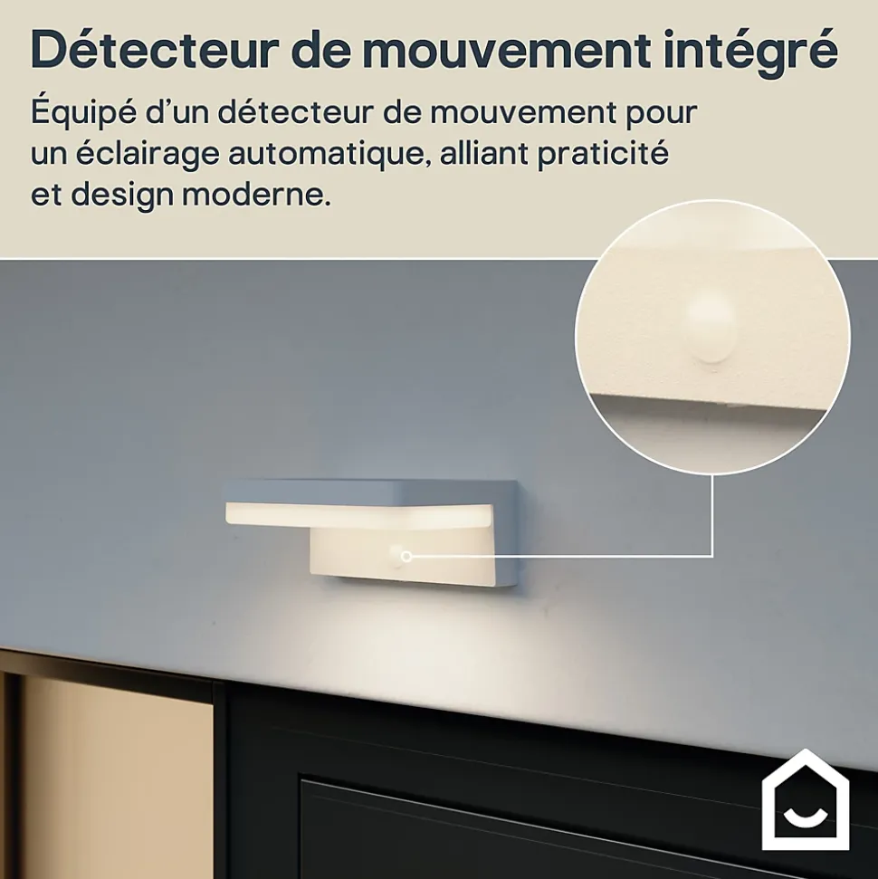 - Ce luminaire est équipé d’un détecteur de mouvement qui active l’éclairage dès qu’un mouvement est perçu, pour une meilleure visibilité et une sécurité accrue