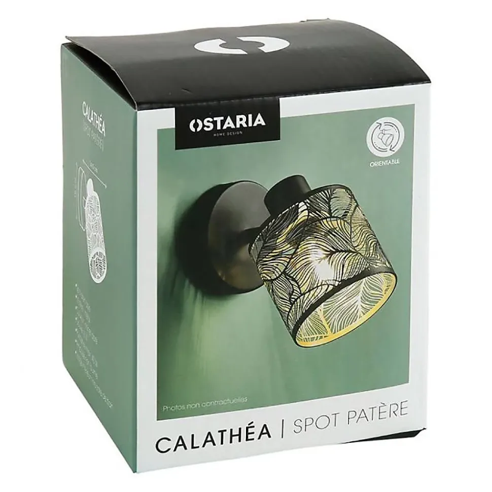 Applique spot orientable Calathéa noirCréez une atmosphère lumineuse pratique et moderne grâce à l’applique spot orientable Calathéa noir et doré. Cette applique originale apportera du renouveau à votre éclairage avec son look contemporain et son abat-jour grille.Informations sur l’applique spot orientable Calathéa :Composition : métalDimensions : 14,5 x 10 cmSpot orientableDouille : E14 Max. 40W (ampoule non fournie)Usage intérieur hors salle de bain