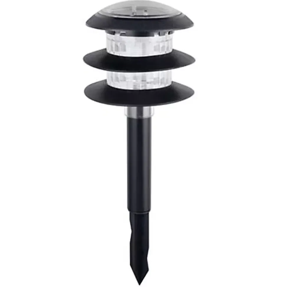 La balise LED solaire Saturne 0,06W IP44 6400K à pour particularité son fonctionnement à l’énergie solaire. Dotée d’un piquet, son installation est simple et rapide car elle se plante directement à même le sol de votre jardin. Quelque soit la météo, la balise LED solaire Saturne 0,06W IP44 6400K se charge pendant la journée et s’allume automatiquement à la tombée de la nuit avec une autonomie de 6 à 8 heures. Sa température de couleur kelvin est de 6400K (Blanc froid). Son diffuseur permet d’éclairer à 360° en direction du sol. Quant à son corps, il est en acier inoxydable résistant à la corrosion. L’indice de protection IP44 assure que le produit est : Protégé contre l’intrusion de corps solides supérieurs à 1 mm. Protégé contre les petites projections d’eau venant de toutes directions. Les produits dotés d’un indice de protection IP44 sont destinés à une installation intérieur ou extérieur protégée, sous abri. Balise vendue avec une pile rechargeable. Vous réalisez des économies tout en apportant une touche design à l’extérieur de votre habitat. Grâce à son rendement énergétique élevé, cette balise possède une classe énergétique A++ à A. Produit conforme à la norme CE, à la directive RoHS et DEEE.