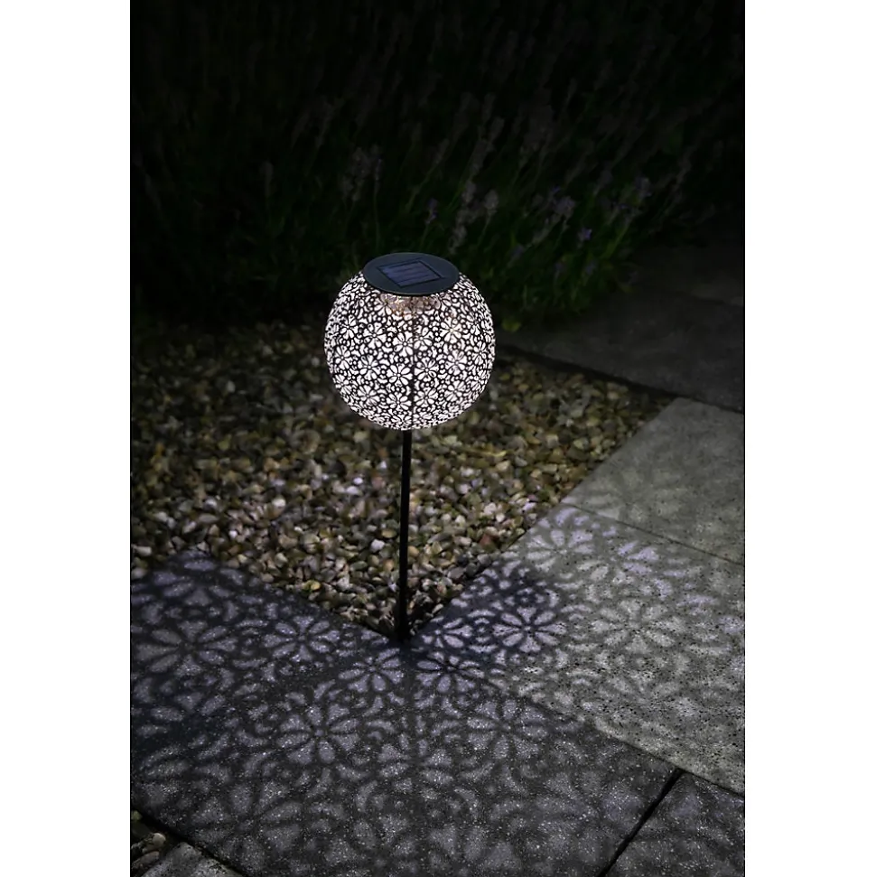 Décoration métal à énergie solaire GALIX avec LED blanche 10 lumens, batterie Ni-Mh AA 400mAh rechargeable. Puissance faible 0,036 W, durée d’éclairage jusqu’à 8 heures, interrupteur on/off, facile à installer sans filage, résistante aux intempéries. Style rétro élégant pour jardin et terrasse.