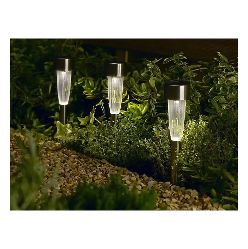 Balise Flûte, pack de 10. Parfait pour baliser les allées, chemins et aménagements de jardin. Se recharge en plein soleil. S’illumine automatiquement des la tombée de la nuit. Plastique.