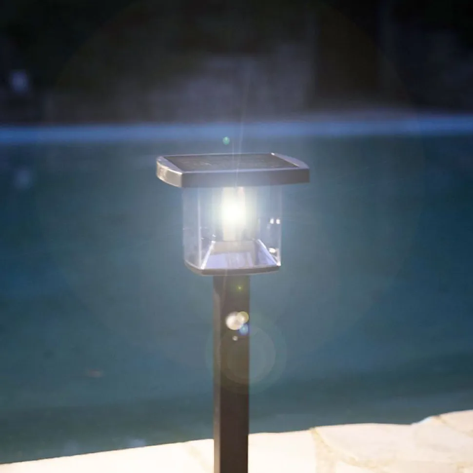 La balise solaire XANLITE SO1811N est un luminaire d’extérieur contemporain en plastique-résine noir. Elle mesure 17 x 17 x 50 cm et dispose d’une ampoule LED intégrée de 600 lumens pour une lumière blanche froide de 6500 K. Elle est équipée d’un détecteur de mouvements et fonctionne à l’énergie solaire.