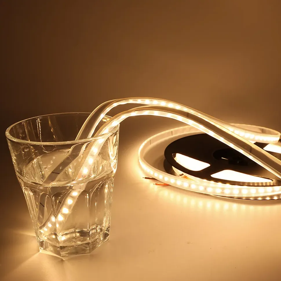 Ruban LED 24V-DC Plastifié IP65 avec Angle de 120º (Coupure tous les 5cm) Le rouleau de 5 mètres de Ruban LED 24V-DC Plastifié IP65 est équipé de 600 puces SMD 2835, soit 120 puces par mètre, offrant une performance exceptionnelle de 10W par mètre. Ce ruban LED garantit une étanchéité optimale grâce à sa protection IP65. Les rubans LED 24V avec puce SMD 2835 produisent une lumière enveloppante et élégante, disponible en blanc neutre ou blanc extra-chaud à 2700K. Ce modèle de ruban LED 24V permet de connecter jusqu’à 10 mètres linéaires avec un seul contrôleur et une seule alimentation, soit le double des rubans en 12V. Avec 120 puces par mètre, ce ruban LED est un produit très professionnel qui assure une répartition homogène de la lumière. Sa flexibilité permet une installation polyvalente, adaptée à divers besoins d’éclairage. Créez différents environnements en installant ces rubans LED dans des endroits stratégiques nécessitant un point lumineux. Il est recommandé d’installer les rubans dans des profilés en aluminium spécifiques pour assurer une dissipation thermique adéquate et prolonger leur durée de vie. Avantages du ruban LED 24V : Très flexible pour s’adapter à différentes installations. Haute luminosité et éclairage grâce à son alimentation en 24V. Nécessite une alimentation 24V et un contrôleur (vendus séparément). Idéal pour une installation dans des profilés pour rubans LED, offrant une fixation sûre et stable.
