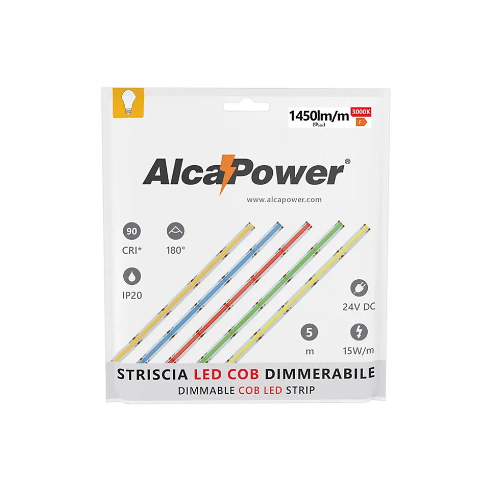Bande LED COB monochromatique de 15 watts/mètre alimentée en 24 V, excellente luminosité. La bande LED COB colorée est une bande LED de nouvelle génération qui permet d’avoir une seule ligne de lumière, éliminant les > visuellement gênants. Chaque bande LED doit être appliquée sur un profilé en aluminium pour dissiper la chaleur et prolonger la durée de vie de la bande LED. La bande LED COB colorée est disponible en trois couleurs de lumière : Bande LED COB lumière chaude (3000K), bande LED cob avec lumière naturelle. (4000K) et bande LED à lumière froide (6000K). Cette bande LED possède un angle d’ouverture de lumière grâce auquel il est possible d’avoir une lumière à 180°, avec un faisceau assez répandu. Où puis-je placer ma bande LED colorée 15W/m C’est une bande LED avec support adhésif (adhésif 3M ? ), indispensable pour coller le ruban LED sur un profilé aluminium et dissiper sa chaleur. La bande LED cob 15 w/m convient à tout type d’application telle que l’éclairage d’une pièce, l’éclairage de magasins, de studios professionnels, de produits exposés ou sous des armoires, également idéale pour créer différents types d’ambiances. Flux lumineux de la bande LED cob lumière chaude. (3000K) : 1350lm/mtFlux lumineux de la bande LED cob lumière naturelle (4000K) : 1500lm/mtFlux lumineux de la bande LED cob lumière froide (6000K) : 1500lm/mtIl existe différents profilés en aluminium pour les différentes applications de la bande LED, nous avons le profilé à encastrer en placoplâtre, le profilé d’angle à 90°, le profilé praticable, le profilé rond, le profilé classique pour créer des tiges sous les éléments hauts et enfin la plaque en aluminium utilisée pour installer la bande LED dans les caches en placoplâtre ICI vous pouvez tout trouver. les profilés en aluminium disponibles. Ce type de bande LED ne peut être utilisé qu’en intérieur, le niveau de protection est IP20