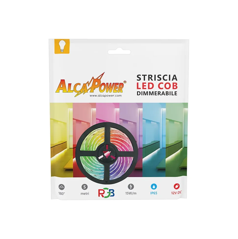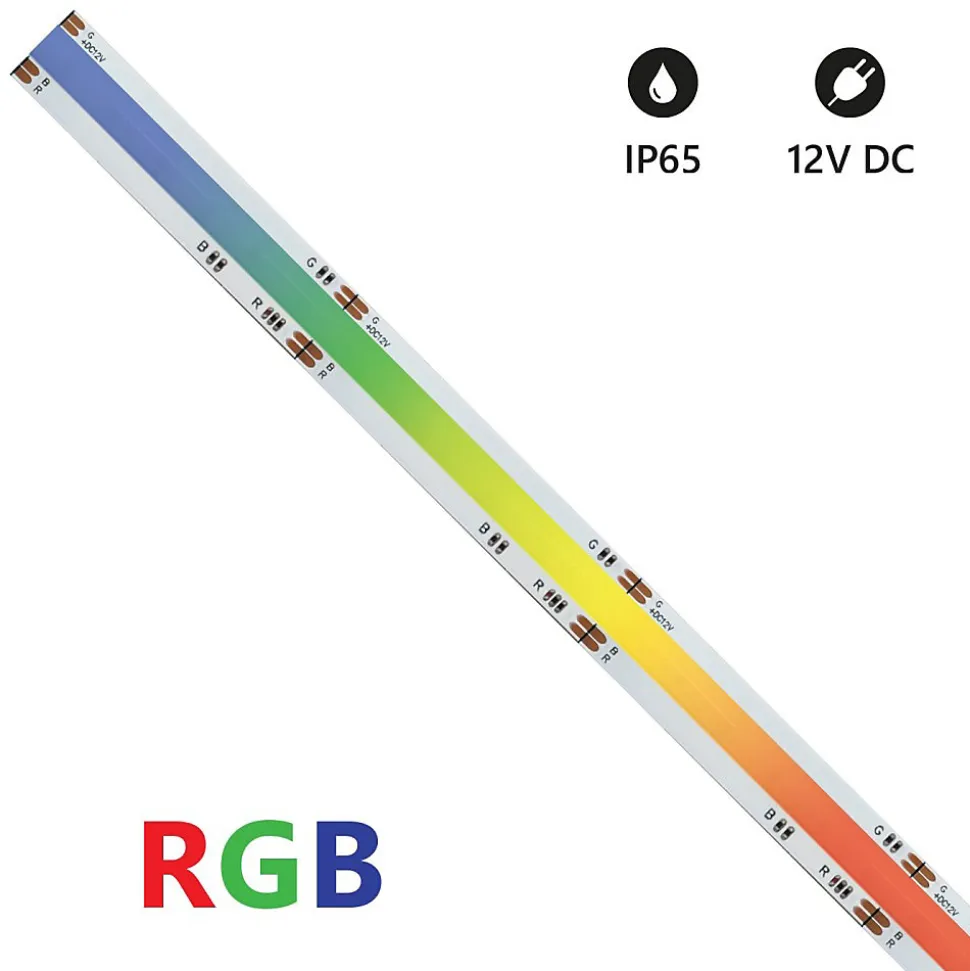 La bande LED COB RVB de 15 watts/mètre doit être alimentée en 12 V. La couleur RVB vous permet de varier la couleur de lumière préférée à l’aide du contrôleur approprié.La bande LED COB est une bande LED de nouvelle génération qui permet d’avoir une seule ligne de lumière, éliminant les > gênants à regarder. Puissance : 15 W/m. Nombre de LED : 840 LED/m.Ce produit est une bande LED COB RGB décorative avec laquelle vous pourrez réaliser avec une grande satisfaction les projets d’éclairage les plus variés.Chaque bande LED doit être appliquée sur un profilé en aluminium pour dissiper la chaleur et prolonger la durée de vie de la bande LED.Cette bande LED possède un angle d’ouverture de lumière grâce auquel il est possible d’avoir une lumière à 180°, avec un faisceau assez diffusé.Où puis-je placer ma bande LED RGB 15W/m ?Il s’agit d’une bande LED avec un dos adhésif, indispensable pour coller la bande LED sur un profilé en aluminium et dissiper sa chaleur. La bande LED RGB 15 w/m est adaptée pour créer différents types d’ambiances. Généralement, il est utilisé pour un éclairage d’ambiance doux dans les salons, les chambres ou les salles de jeux. Nous recommandons d’installer la bande LED dans un profilé en aluminium dissipateur. ICI vous pouvez trouver tous les profilés en aluminium disponibles.Ce type de bande LED ne peut être utilisé qu’en intérieur, le niveau de protection est IP20.La bande LED RVB peut être coupée, le long de la ligne appropriée, tous les 5 cm. Taille de la bobine : 10×1,6×5000 mm. La bande LED nécessite une alimentation 12 volts, elle nécessite donc une alimentation, que vous pouvez trouver ICI. La bande LED RGB est dimmable, ce qui signifie qu’il est possible de faire varier l’intensité de la lumière, et dans ce cas également la couleur de la lumière avec le contrôleur approprié que vous pouvez trouver ICI. Remarque : Il est également possible d’alimenter la bande RGB directement sans utiliser de contrôleur