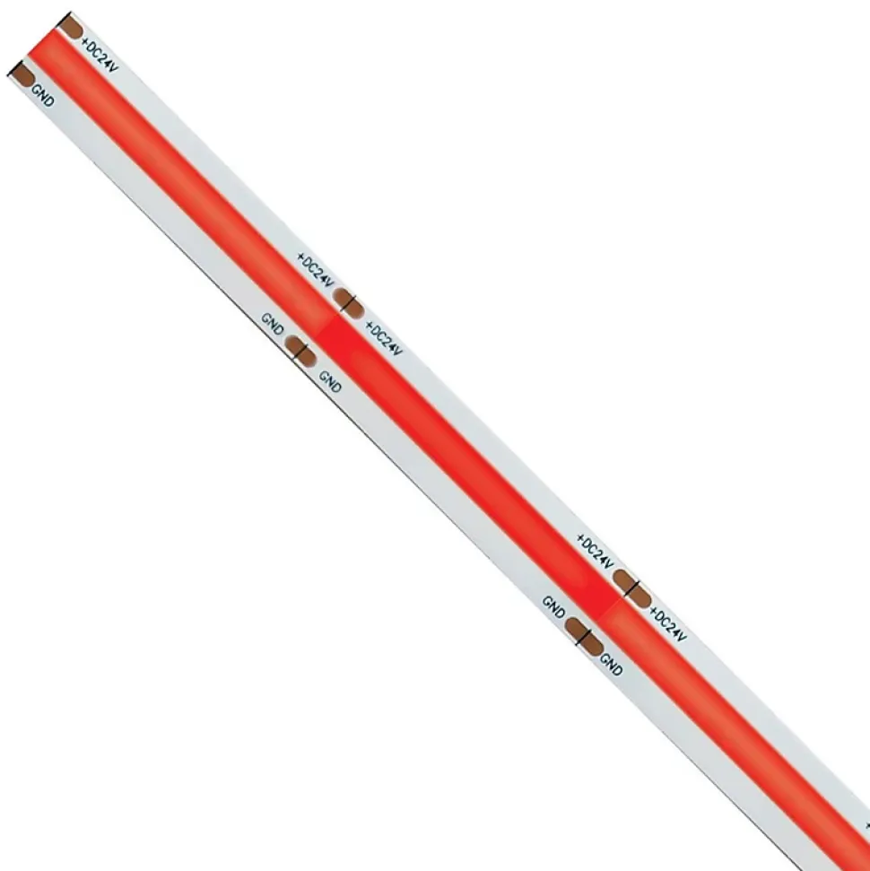 Bande LED COB monochromatique colorée de 15 watts/mètre alimentée en 24 V, excellente luminosité.La bande led cob colorée est une bande led nouvelle génération pour deux raisons, la bande led colorée revient en version monochrome (contrairement au RGB) et bien plus lumineuse que les premières bandes led 12volts, de plus la bande led cob permet d’avoir une seule ligne de lumière, éliminant les > gênants pour l’œil. Chaque bande LED doit être appliquée sur un profilé en aluminium pour dissiper la chaleur et prolonger la durée de vie de la bande LED.La bande LED cob colorée est disponible en quatre couleurs : bande LED cob rouge, bande LED cob jaune, bande LED cob bleue et bande LED cob verte. Cette réglette LED possède un angle d’ouverture de lumière grâce auquel il est possible d’avoir une lumière à 180°, avec un faisceau assez répandu.Où puis-je placer ma bande LED colorée 15W/m ?Il s’agit d’un ruban LED avec un dos adhésif (adhésif 3M), indispensable pour coller le ruban LED sur un profilé aluminium et dissiper sa chaleur. La bande LED colorée 15 w/m est une bande qui offre des applications particulières en fonction de vos besoins ; idéal pour créer des ambiances et des scénarios à votre goût. Ils peuvent également être soudés entre eux en les mélangeant et créer des drapeaux ou autres ambiances. Il existe différents profilés en aluminium pour les différentes applications de la bande LED, nous avons le profil à encastrer en plaques de plâtre, le profil d’angle à 90°, le profil praticable, le profil rond, le profil classique pour créer des tiges sous les éléments hauts et enfin la bande d’aluminium utilisée pour installer la bande LED dans les couvercles en plaques de plâtre.ICI vous pouvez trouver tous les profilés en aluminium disponibles.Ce type de bande LED ne peut être utilisé qu’en intérieur, le niveau de protection est IP20