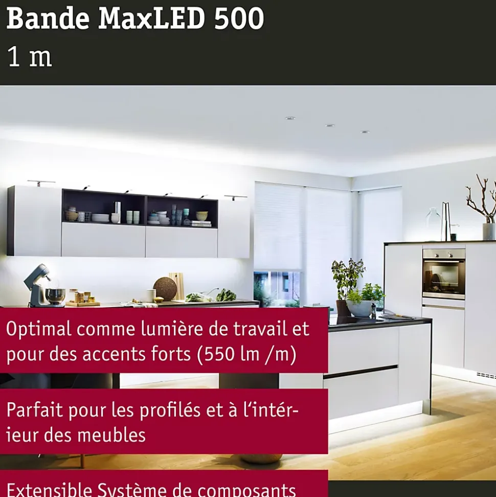 Bandeau complémentaire pour prolonger le kit de base MaxLED 500 « »Lumière du Jour » » puissance: 3W flux lumineux: 280lm température de couleur: 6500K pose facile et sans outil grâce à l’autocollant double face