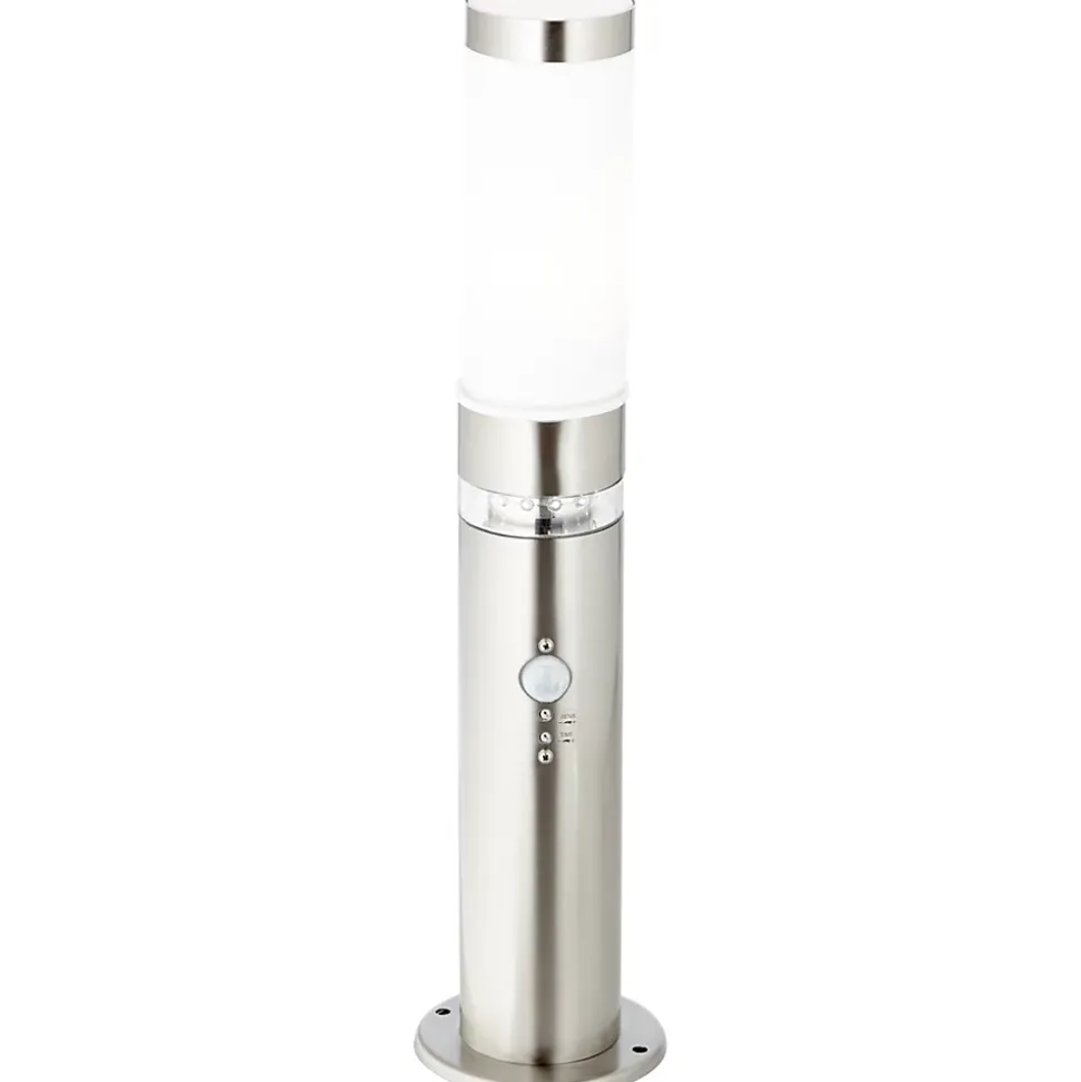 La lampe de sol BOLE s’installe sur de petits murs extérieurs ou des terrasses. Partout où un socle est déjà présent, elle peut être installée sans problème. Conçue pour des lampes normales, les sources de lumière ne sont cependant pas incluses dans la livraison. L’utilisation d’ampoules LED est toutefois possible. Le détecteur de mouvement intégré garantit sécurité et visibilité dans l’obscurité. La durée d’éclairage et la sensibilité peuvent être réglées. Grâce à l’interrupteur crépusculaire, la couronne LED décorative de la lampe s’active. Celle-ci sert de lumière d’orientation. Ce luminaire est classé IP44 et est donc parfaitement adapté à une utilisation en extérieur, même dans les zones où la protection contre les intempéries n’est pas très élevée. Tout le matériel d’installation nécessaire est inclus dans la livraison.