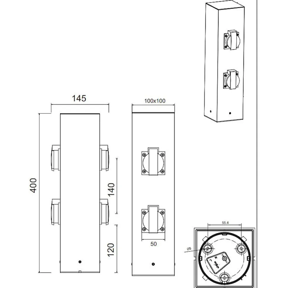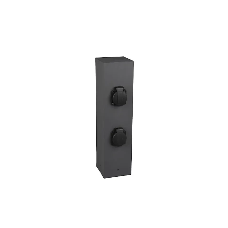 Les caractéristiques techniquesPour vous procurer de l’électricité dans votre jardin ou sur votre terrasse, voici la borne extérieure d’alimentation de chez Trio.Vous avez accès a 4 prises de courant étanches qui vous permettront de brancher des appareils d’une puissance de 3600 watts maximum (projecteur, tondeuse, perceuse etc.)Le corps est en métal , matériau de qualité qui en assure la solidité.Elle est étanche (IP 54) ce qui permet son installation à l’extérieur.Les avantages esthétiquesPour cette borne d’alimentation, les designers de Trio ont privilégié une esthétique discrète et épurée qui se mariera avec tout type de décoration extérieure.