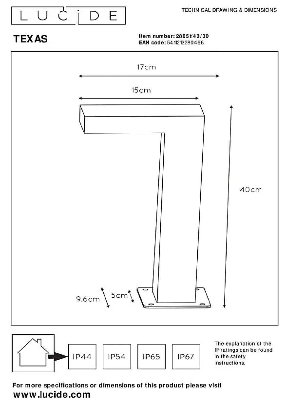 Laissez-vous guider par un design exclusif de l’éclairage d’extérieur. Ce modèle extérieur nommé Texas est composé d’une base de 40 centimètres de haut et d’un éclairage LED intégré avec une lumière brillante et confortable. Texas est parfait pour éclairer les allées, mais aussi pour apporter une ambiance chaleureuse dans votre jardin, sur votre patio ou terrasse. La version anthracite se fondra subtilement dans le décor et vous offrira une atmosphère fantastique le soir.Caractéristiques uniques:• Équipé d’une lampe LED intégrée• Dispose d’une lumière blanche chaude (3000K)• Facile à connecter à un interrupteur mural (non fourni)• Fabriqué en aluminiumPrincipales caractéristiques du produit:• Dessiné spécialement pour une utilisation fiable et de longue durée à l’extérieur (IP54)• Consommation énergétique: 1x8W / 230V / Sans intensité variable (Ampoule incluse)• Dimensions: Lon.9,6 x Larg.15 x Haut.40 cm• 3 Ans garantie sur le luminairePourquoi choisir l’éclairage Lucide?Lucide incarne un design innovant, un savoir-faire artisanal et une fiabilité exemplaire. En tant qu’entreprise familiale belge avec plus de trois décennies d’expertise, nous concevons des éclairages de haute qualité qui enrichissent et transforment chaque espace, tant intérieur qu’extérieur. Notre collection polyvalente comprend des luminaires durables et des sources lumineuses économes en énergie, soigneusement conçus par nos propres experts et fabriqués selon les normes CE les plus strictes. Grâce à notre large gamme, nous vous proposons toujours une solution d’éclairage adaptée, quel que soit le style ou l’espace. Ainsi, nous illuminons non seulement votre espace de vie mais aussi votre processus de choix dans la recherche d’un éclairage de qualité et abordable. Chez Lucide, nous combinons innovation et savoir-faire pour un éclairage qui ajoute non seulement de l’ambiance, mais transforme chaque maison en foye…