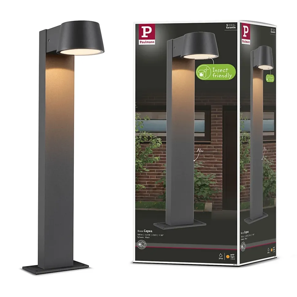 La borne lumineuse Capea avec une puissance de 6W crée des effets lumineux attractifs et augmente la sécurité par l’éclairage des espaces en plein air. Elle éclaire les entrées et les allées de façon homogène et sûrement. Avec sa température de couleur de 2200 k, l’applique est particulièrement adaptée aux insectes. Cette valeur se situe en effet en dehors de la plage visible de la plupart des insectes, ils ne sont donc pas attirés par cette source lumineuse supplémentaire. Le luminaire protège activement les insectes sans que son efficacité pour les humains ne soit entravée. La lumière dorée chaude crée une atmosphère agréable autour de la maison.
