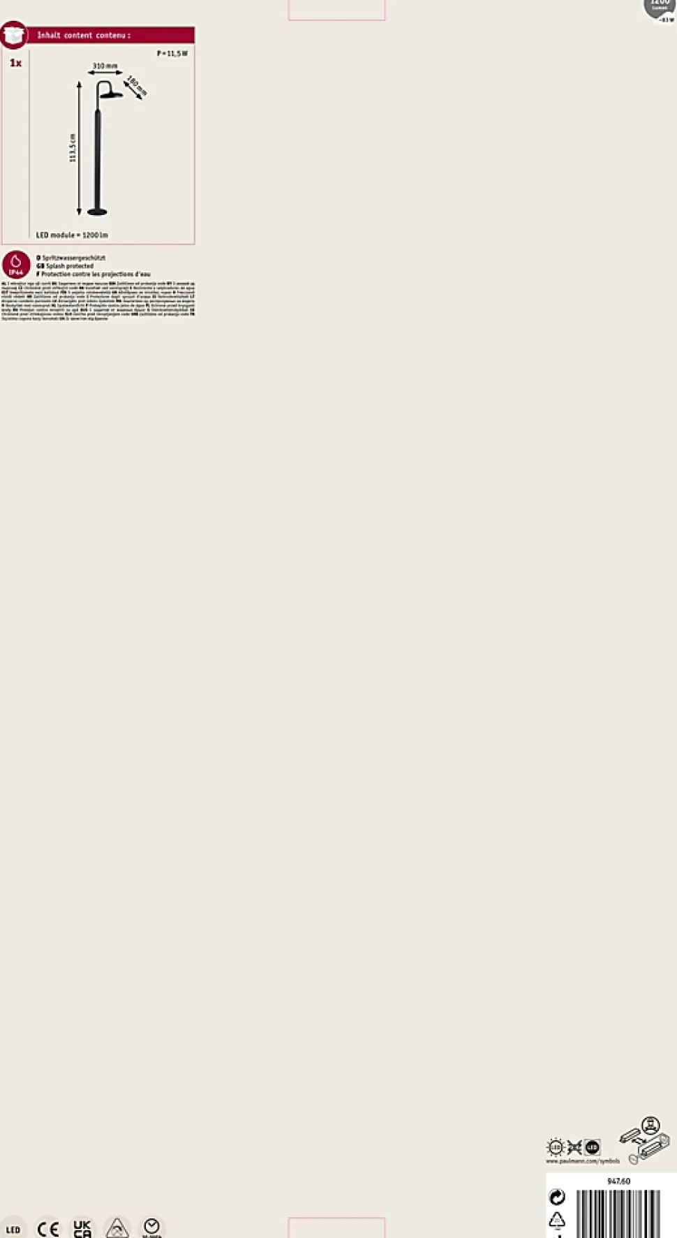La rencontre de la modernité et du classique – La borne lumineuse LED Nostro séduit par son design classique et un style provincial. Avec son verre satiné, l’applique diffuse une lumière blanc chaud et non éblouissante. L’ampoule est indirecte. L’armature cintrée de couleur anthracite crée une esthétique nostalgique et contemporaine à la fois. L’indice IP 44 signifie que ce luminaire est protégé contre les aspersions.