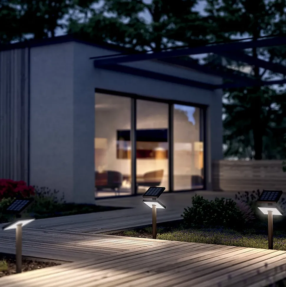 Le spot solaire LED Heliostepper diffuse une lumière blanc chaud puissante de 200 lumens (3000K). Son panneau solaire orientable garantit une exposition optimale pour une autonomie technique de 15 heures après une charge complète. Doté d’un capteur crépusculaire, il s’allume automatiquement avec un module intelligent : intensité maximale pendant 3 heures, puis réduction progressive pour durer toute la nuit. Livré prêt à l’emploi avec un pique de 25 cm, il s’installe facilement dans la terre ou sur sol dur via une base optionnelle à visser. Certifié IP65, il résiste à la pluie et aux rayons UV pour une utilisation durable. Sa batterie est facilement remplaçable pour prolonger la vie du produit. Que ce soit pour une occasion spéciale ou pour un usage régulier, elle valorise instantanément votre extérieur comme votre intérieur. Vous pouvez la disposer le long d’une pergola, d’une rambarde ou d’un mur pour.