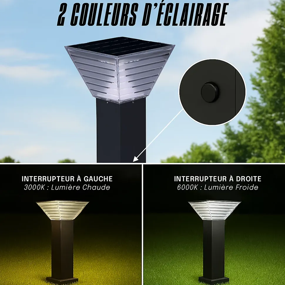 - DOUBLE TEMPÉRATURE D’ÉCLAIRAGE 3000K & 6000K : Adaptez votre éclairage extérieur solaire selon vos besoins grâce à ses deux températures de lumière : 3000K pour une ambiance douce et 6000K pour une visibilité accrue. Une flexibilité parfaite pour valoriser vos extérieurs à tout moment.