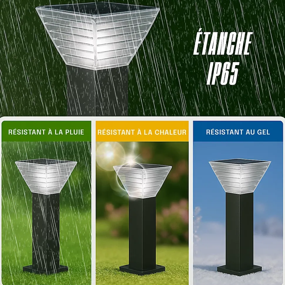 - JUSQU’À 20H D’AUTONOMIE APRÈS 5H DE CHARGE : Équipée d’une batterie haute performance, cette borne solaire LED offre un éclairage durable toute la nuit. Recharge rapide en journée, sans câbles ni électricité : l’énergie solaire devient votre meilleur allié au quotidien.